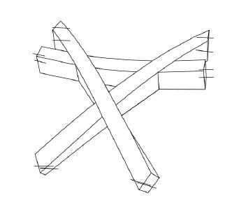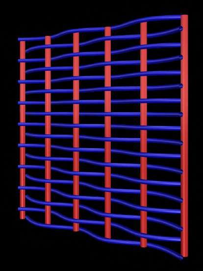 The tri-axial weave could be applied at a building scale to create a series of interlocking/interweaving spaces. Deformable members form a skeleton which gains supports from those interlocking with it.