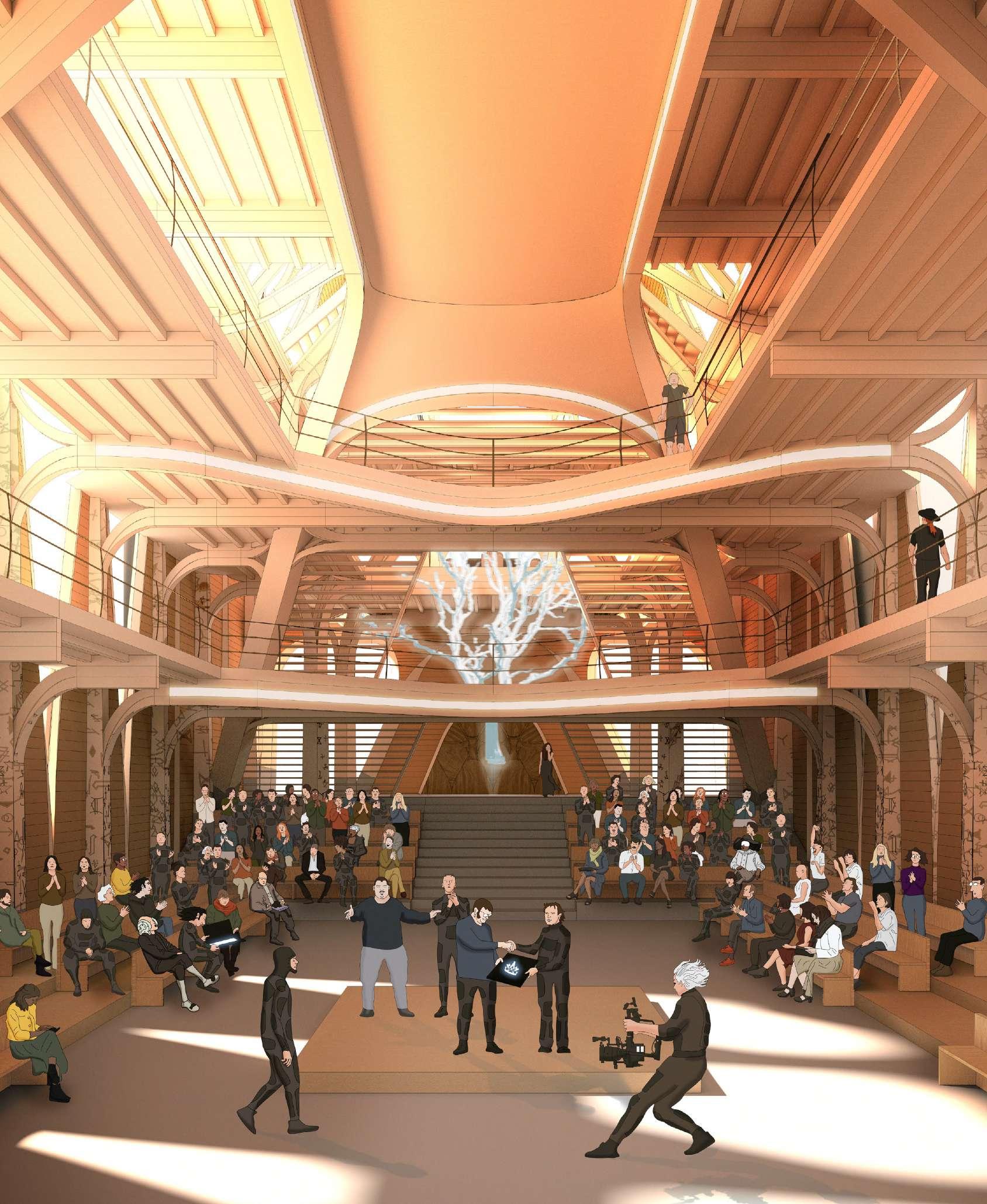 The main chamber is intended as an extension of the square, enabling both public and guild assembly for lectures, apprentice graduations, debates on guild policy or other events.