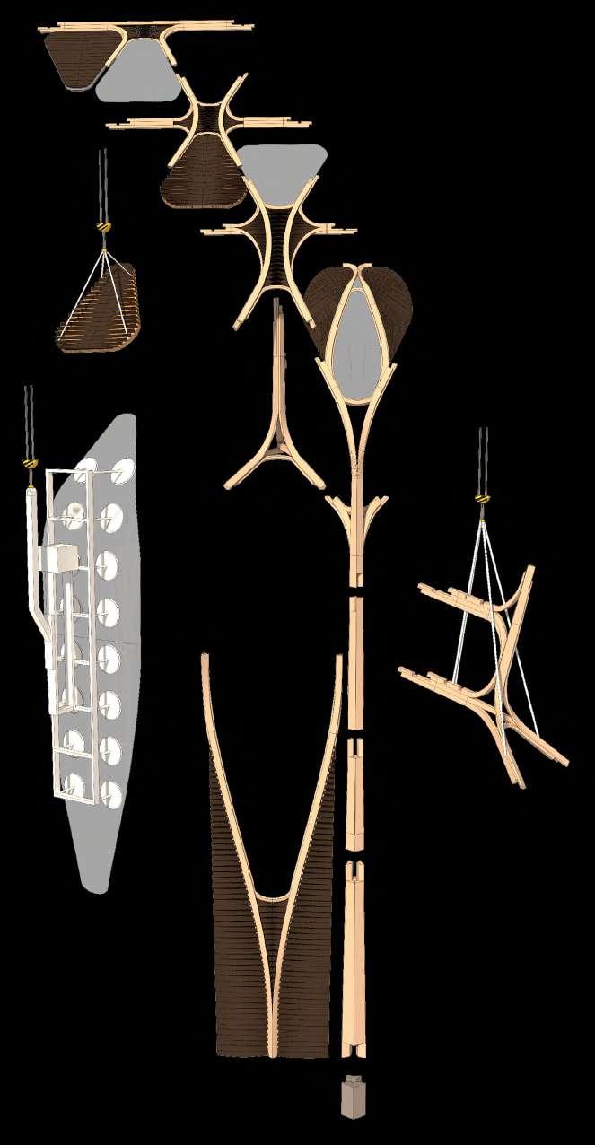 structures A. Primary 01 post and beam interface B. Primary 02 branching post C. Transfer 01: post to transfer D. Transfer 02 transfer node E. Stability 01: infilled node A. B. C. 14. 1. 6. 7. 8. 9. 10. 11. 12. 13.
