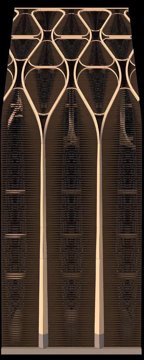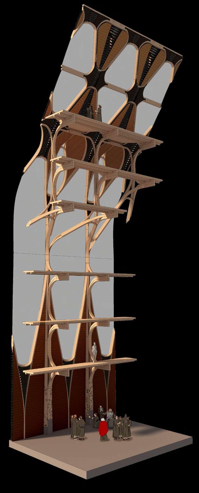 The building is designed around a series of generous circulation spaces which allow for the collision of guild and public life, surrounded and enabled by the expressive timber structure. The main transfer structure is intended as a feature point of the building.