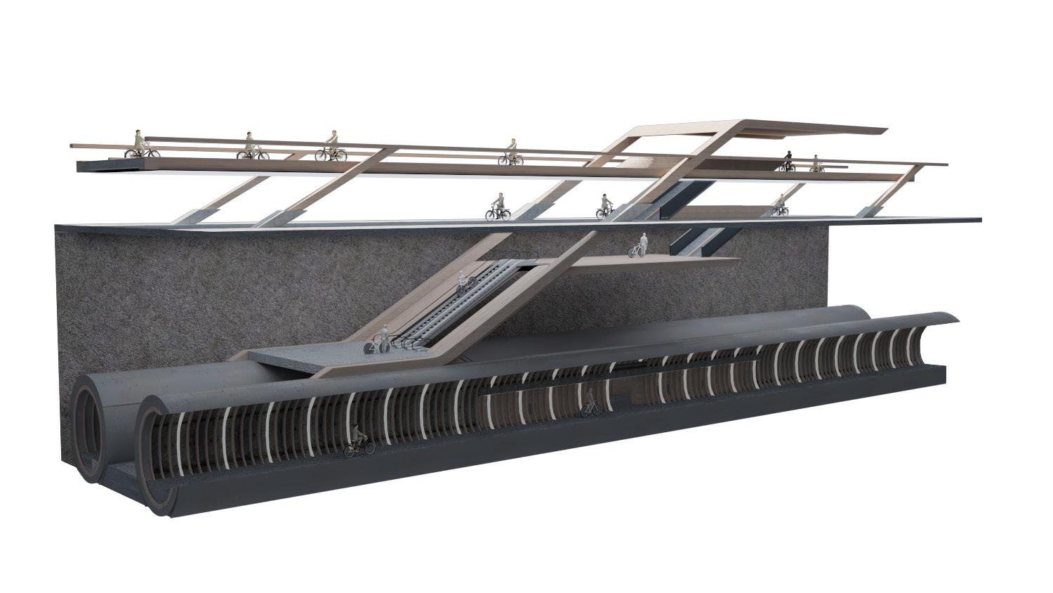 There is a network of abandoned tube tunnels under London. The scheme proposes to regenerate this existing infrastructure for use as cycle paths. Similar proposals by practices such as Gensler consider how these tunnels could be re-imagined to become habitable for cyclists.