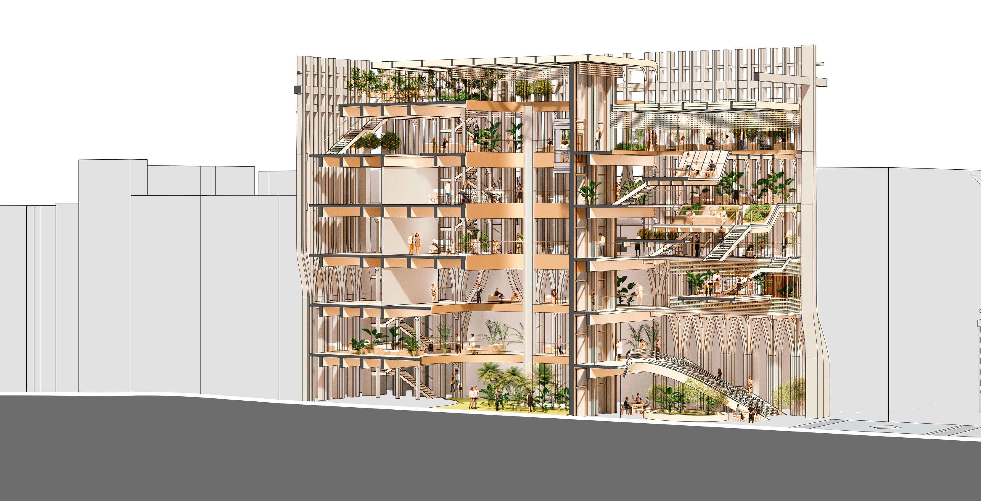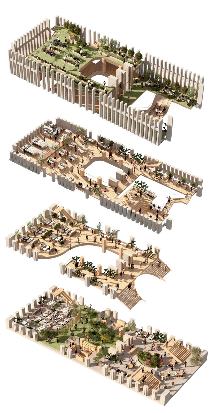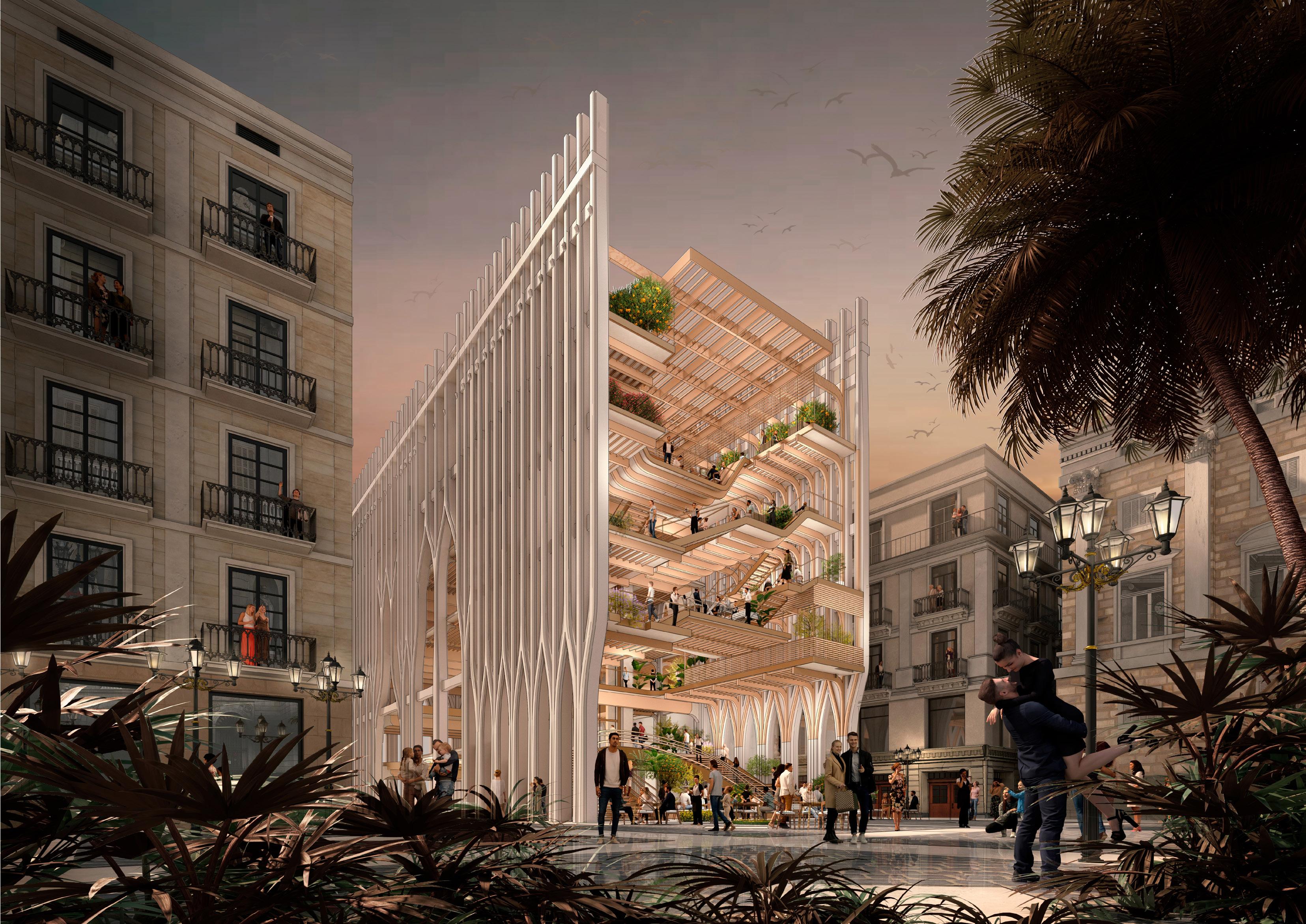 The Gastronomy Garden proposes a new approach to eating that breaks down the spatial and performative barriers present in the more traditional restaurant typology which tends to create a more isolated and closed eating process that can limit social engagement and interaction within one’s own table and party. The ICCA invites a more dynamic take, where each floor presents a different course and unique gastronomical environment tailored to said course, which belongs to a wider 10-12 course menu elaborated by students daily. As one makes their way up eating, it becomes an opportunity to interact and socialise with people around you as you eat, which is something Catalan people love to do. Furthermore, by having an openand nterconnected vertical garden, it becomes a very tangible experience with visual, olfactory, tactile, aural and gustative interactions and intersections.