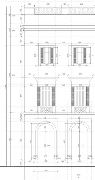 A set of General Arrangement Drawings (floor plans and section) of the key levels in the building, describing the overall spatial organisation and sequencing of spaces across the building. The project grid follows the alignment of the façade structural columns, from which the structural logic and organisation of floor structural beams and internal walls is derived.