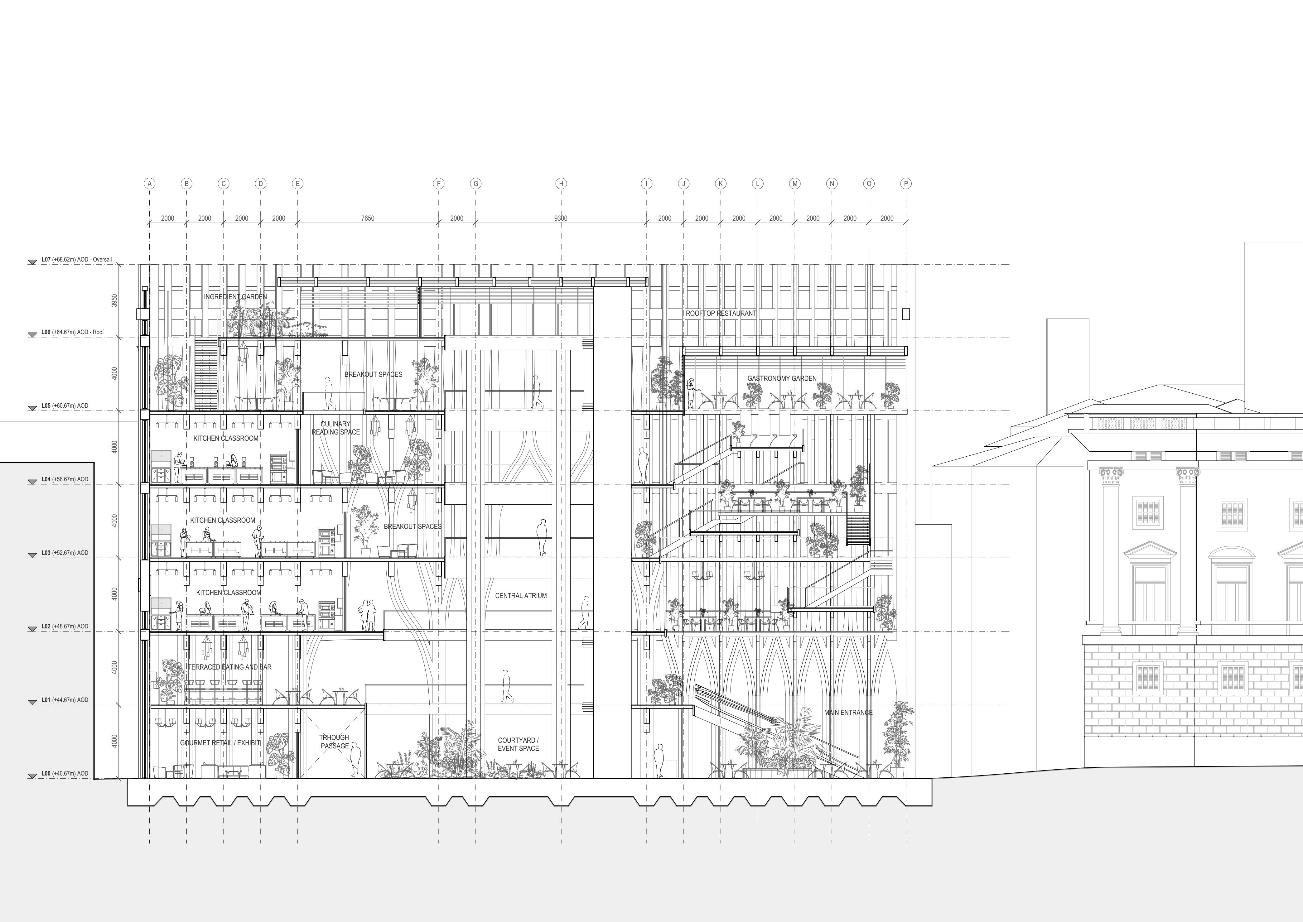 The project ambition is to respond to Barcelona’s unique culture and heritage, the spirit of its people and place. I wanted to explore I consider to be one of the most important aspects of Catalan culture: Gastronomy. In Barcelona, food is an inextricable part of people’s everyday lives, and eating is almost like a sacred ritual. Food is part of business, pleasure and daily routine. In honour of Catalan gastronomy, the project proposes a culinary institution, paying homage to Catalan traditions and identity through food.