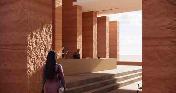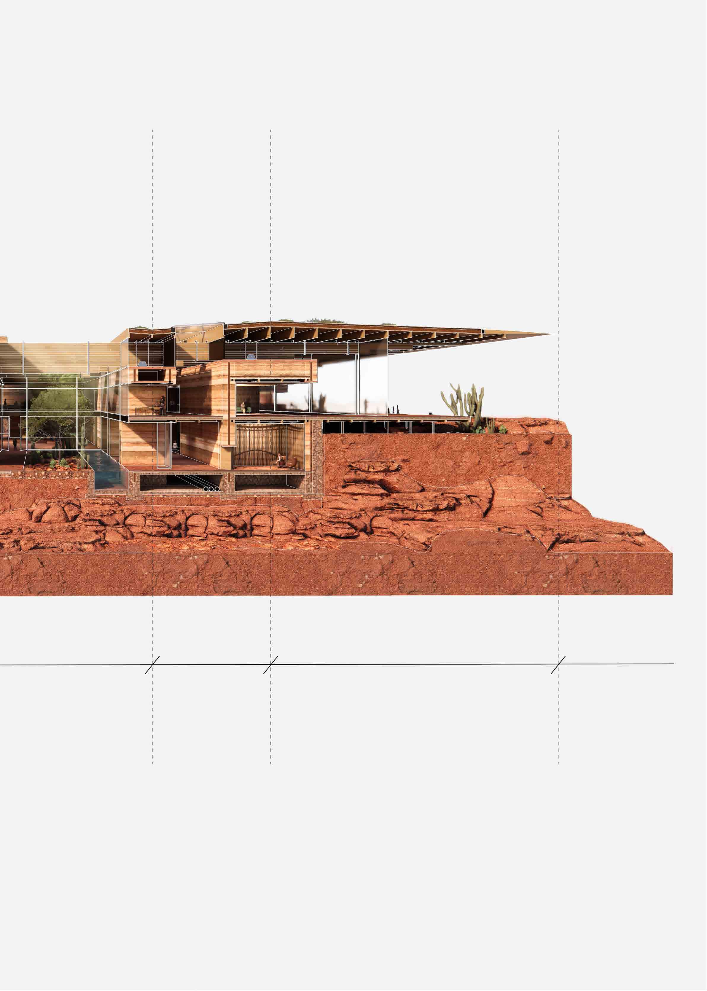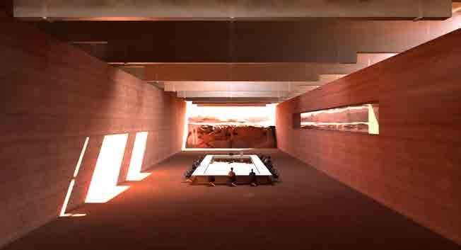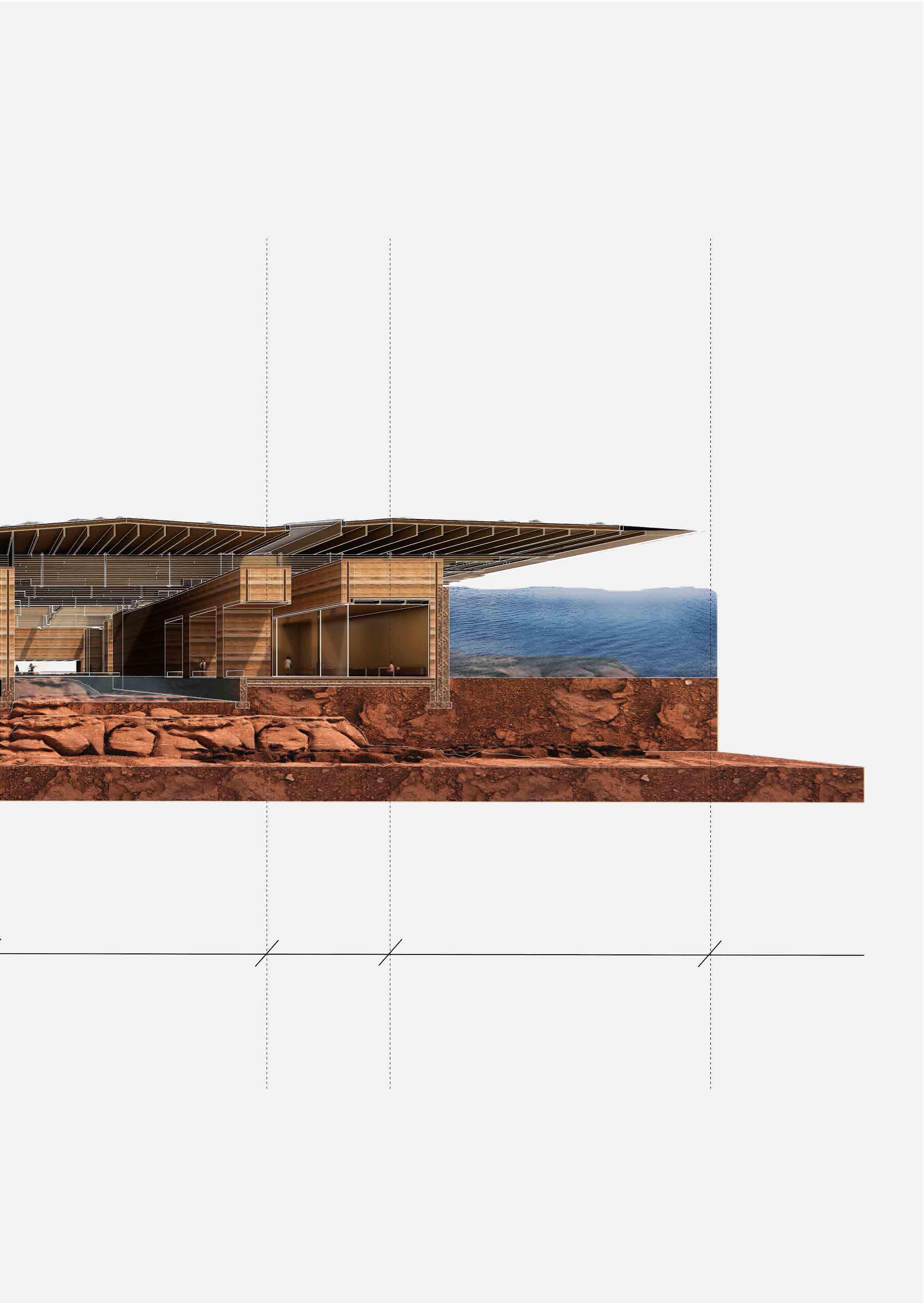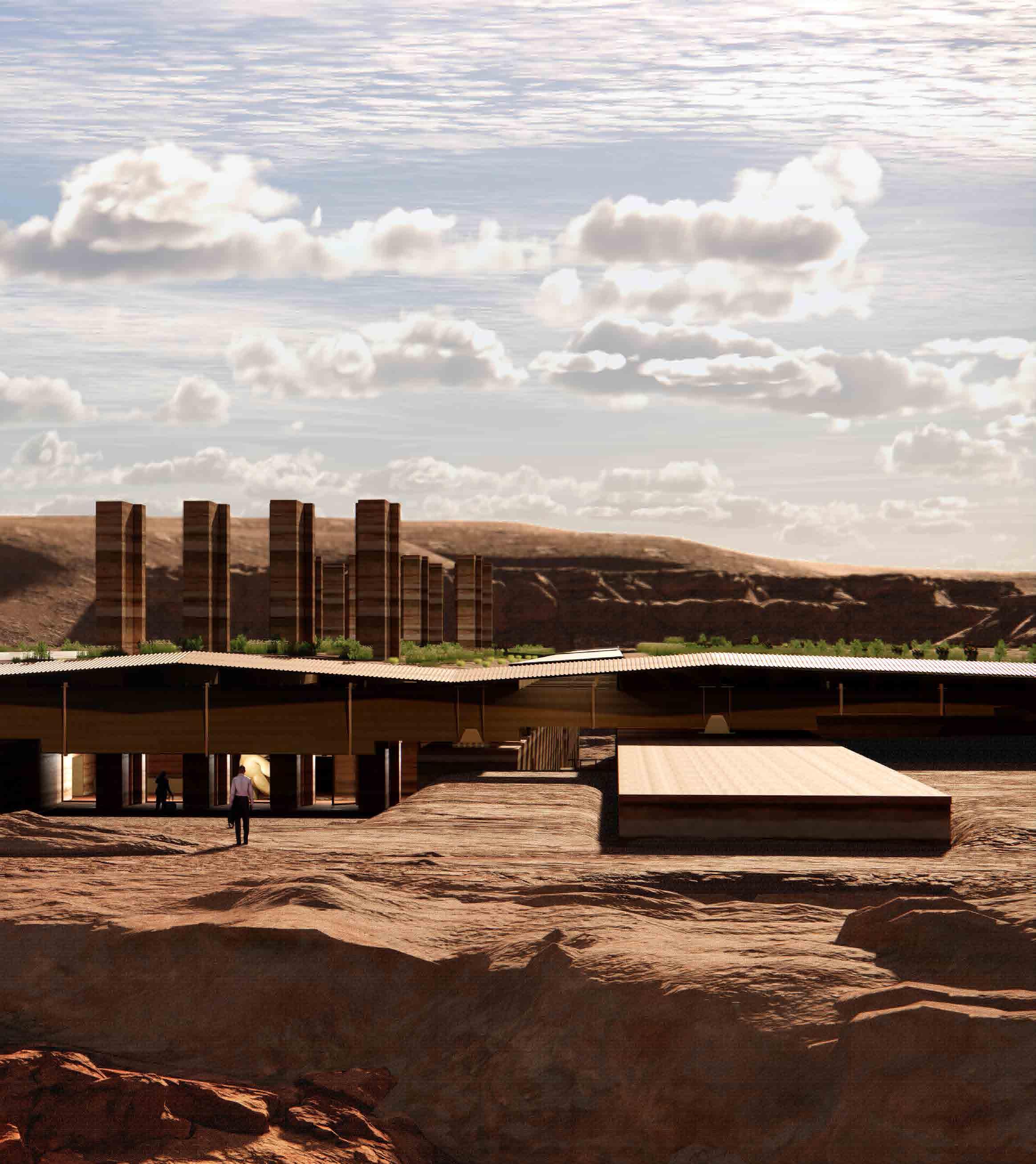 The building is located to look out towards the confluence of the Colorado and Little Colorado River. Accessed by the existing motorway into the Navajo Nation.