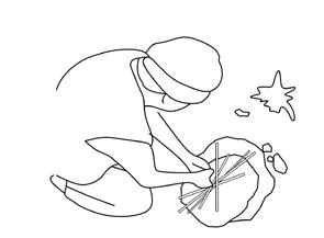 Lower blocks are carved from one block to provide rigidity where the geometry of the horizontal and transverse rib cross. This progresses to the top drums which have faces perpendicular to the arch curvature. The arch extends as voussiors with radial joins.