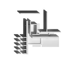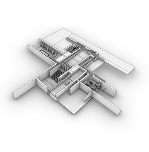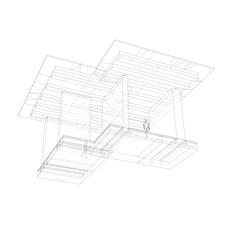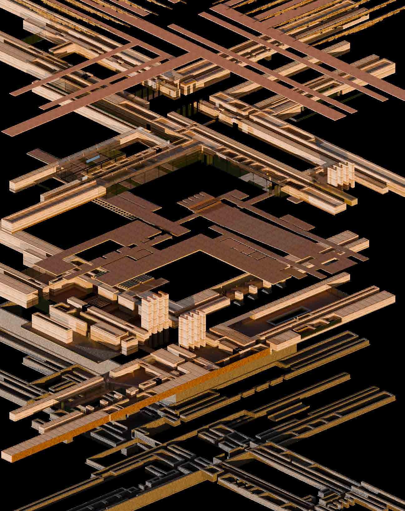 Set of drawings for the proposed design of the Colorado River Tribes Headquarters. The title image above is an explosion of the final model, showing the key structural hierachy.