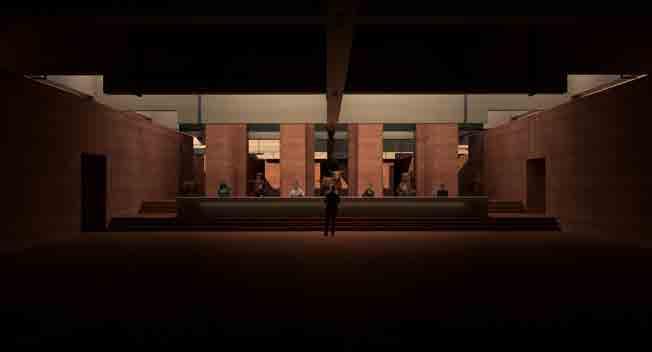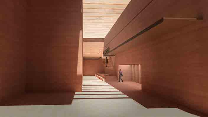 Lower floor of the law firm with controlled climate lightwell connecting the two heights. A place for tribes to work together to tackle ongoing debates between the government and Arizona.