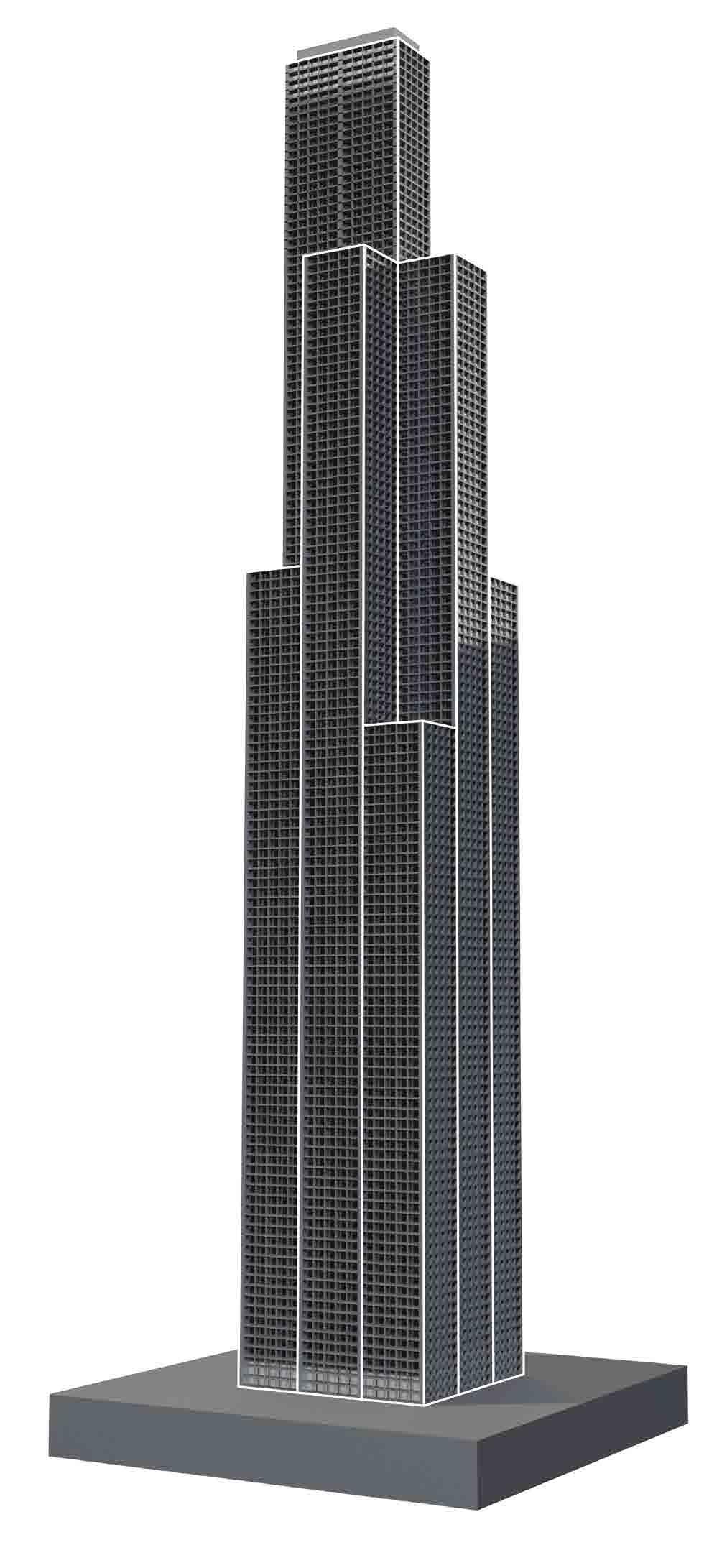 Reference to the Willis Tower in Chicago. With over 100 floors this simple bundled arrangement works efficiently.