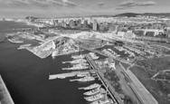 The EIC Opera House in its urban context. The building faces Barcelona’s city beaches and harbours. It draws Barceloneta sea. The proposal integrates the