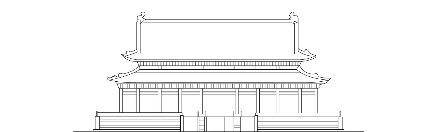 Tiled roof canopy with a geometry inspired by Chinese hip-gable roofs. Its curvature allows for spaces with varying heights, its peak accommodates the spatial requirements for the theatre’s flytower. The two roofs meet and connect at their highest point.