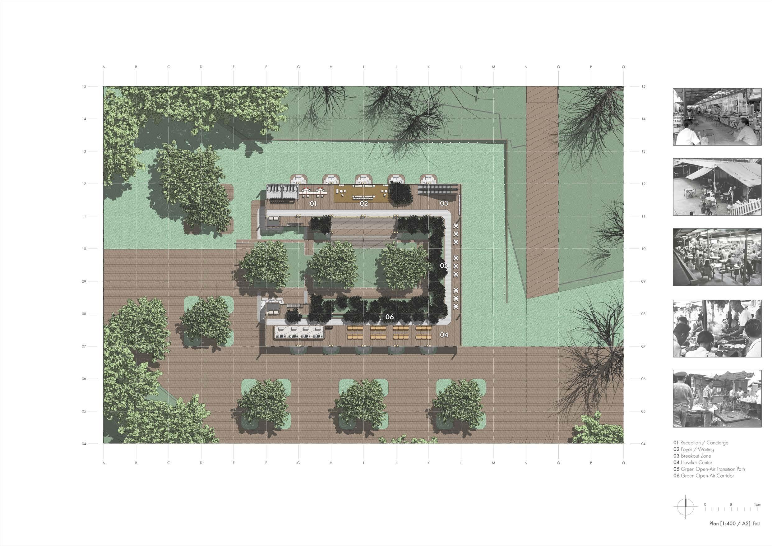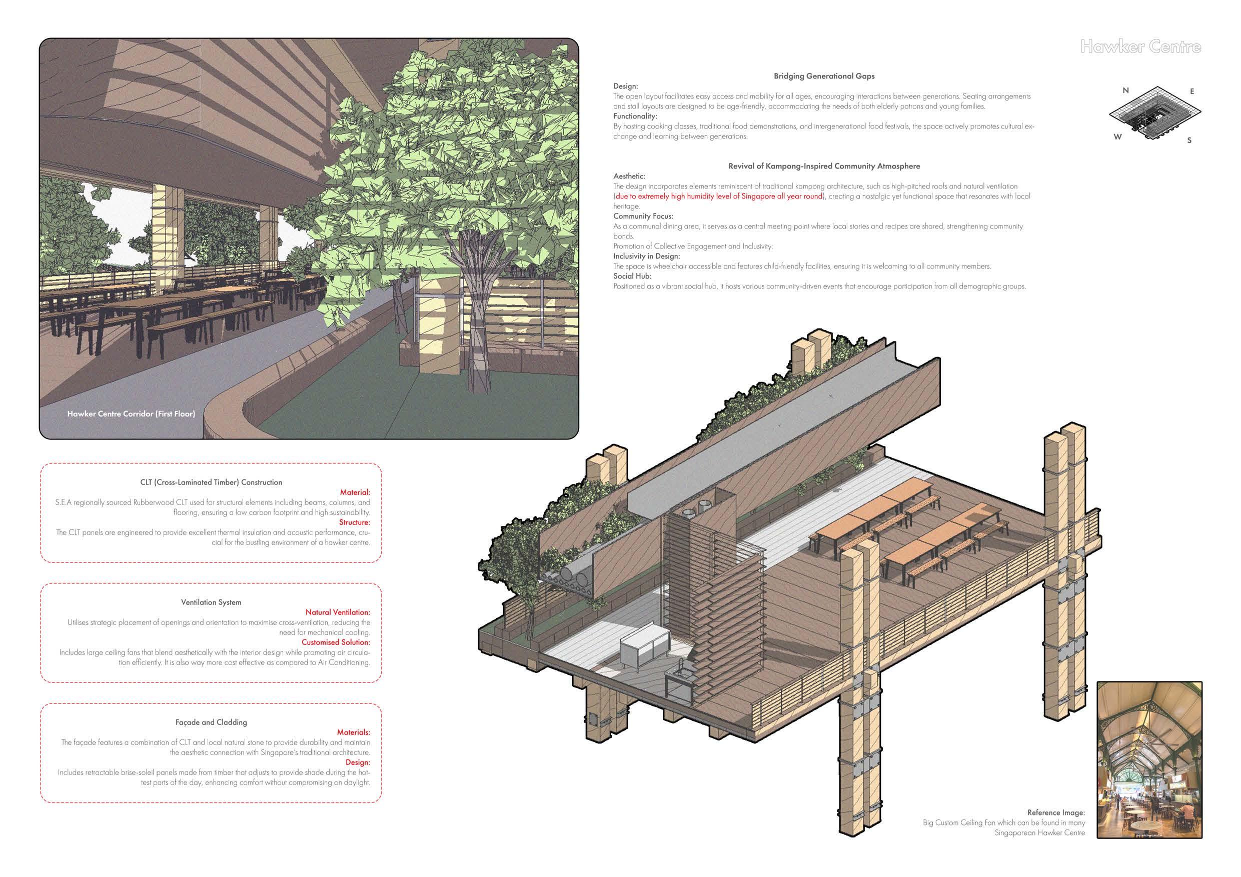 Hawker Centre (Exterior View) Main Entry Stairs Refuge Spaces Healthcare Centre Service Roof Arts & Crafts Studio Office
