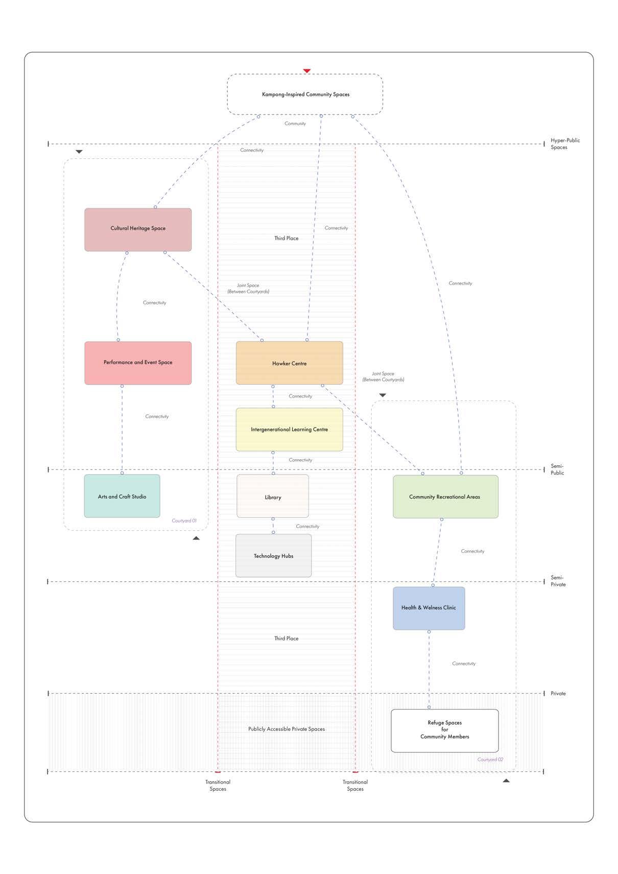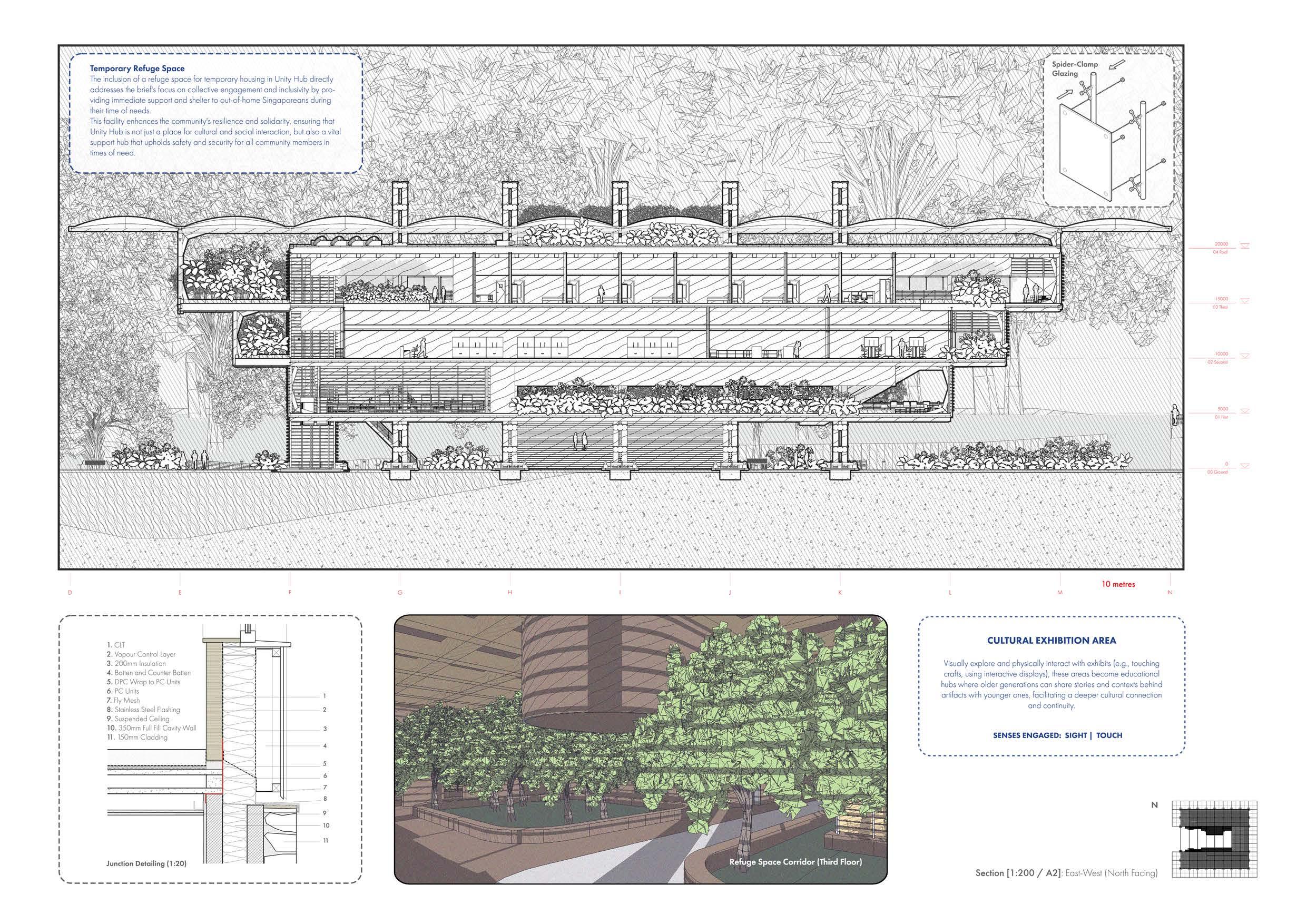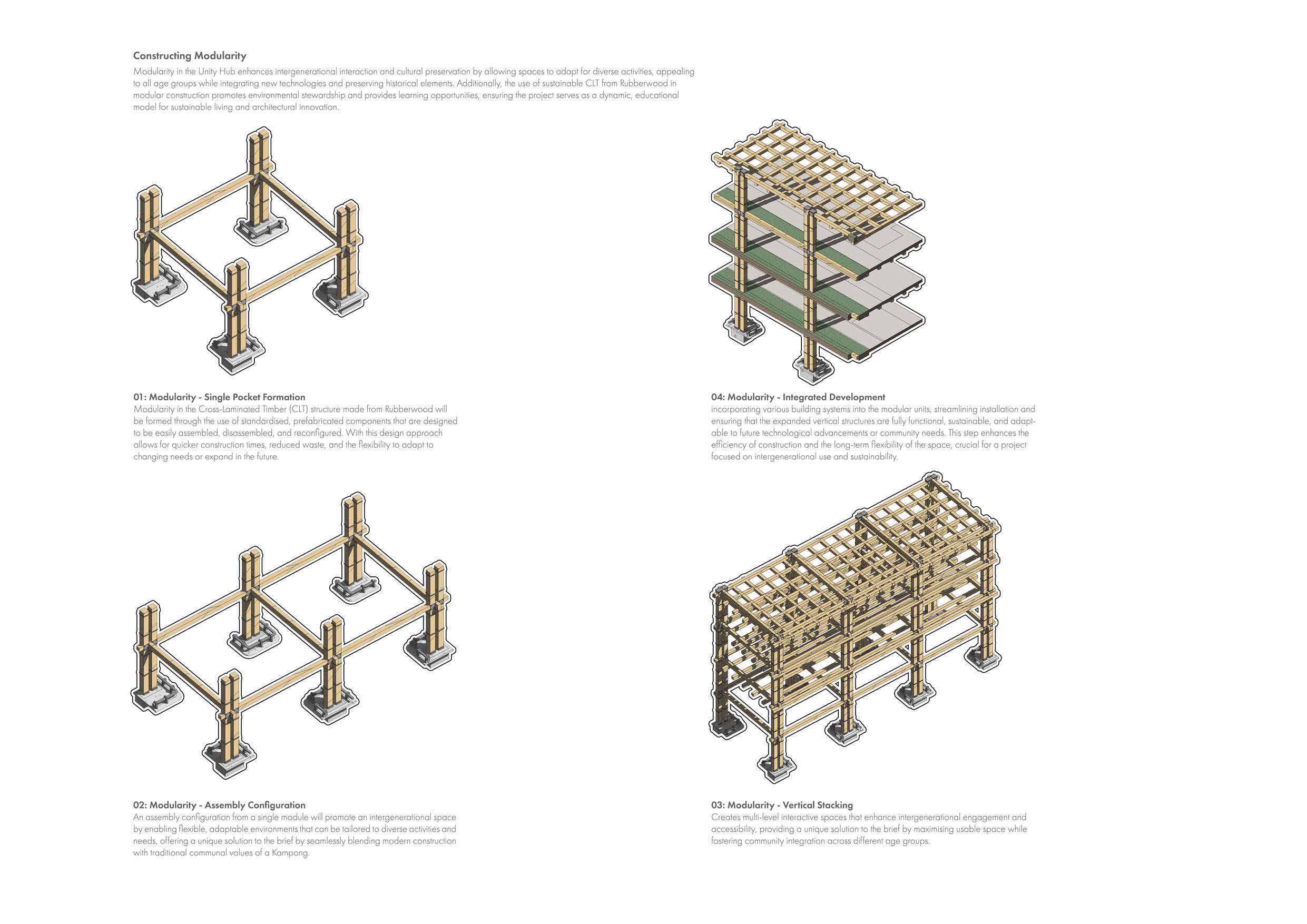 More than just a community space, 'Unity Hub' is an active, experiential institution where the environment demonstrates how social activities and multi-age learning can be seamlessly integrated into the urban fabric, thus offering a tangible, dynamic solution to the challenges forced by the pioneers of Singapore. It aims to inspire a holistic approach to community building by encompassing respect for the past, engagement in the present, and planning for a future.