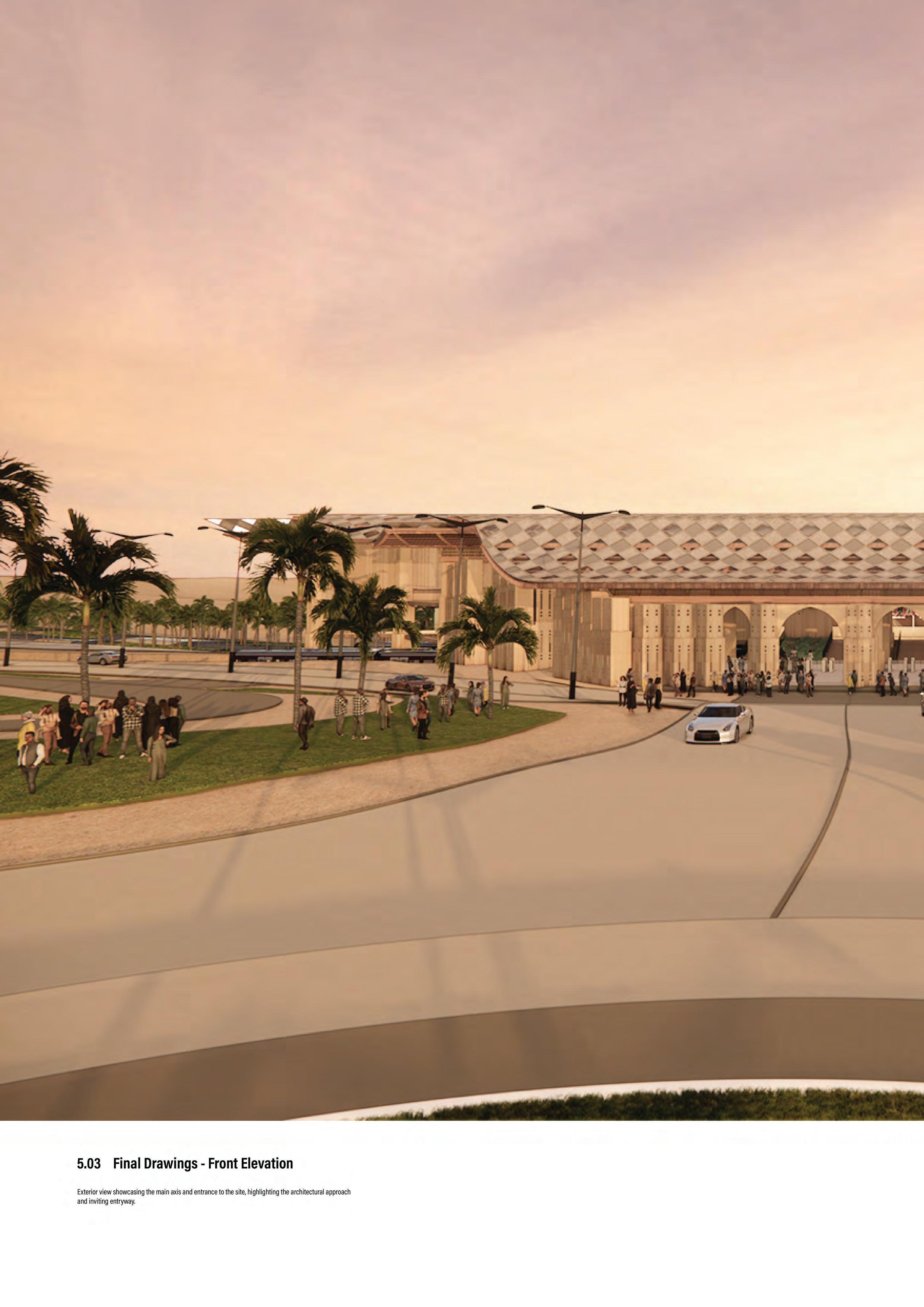 The primary material choice of rammed earth serves both aesthetic and environmental purposes. Drawing inspiration from the traditional mud structures of Diriyah, this design pays homage to the cultural roots while integrating modern techniques. Rammed earth, known for its exceptional thermal mass properties, aligns seamlessly with the demands of the local climate, contributing to energy efficiency and sustainability. In envisioning the future of Saudi Arabia, this project transcends mere architectural aesthetics. It symbolizes a paradigm shift from an oil-dependent economy towards a greener, more sustainable
