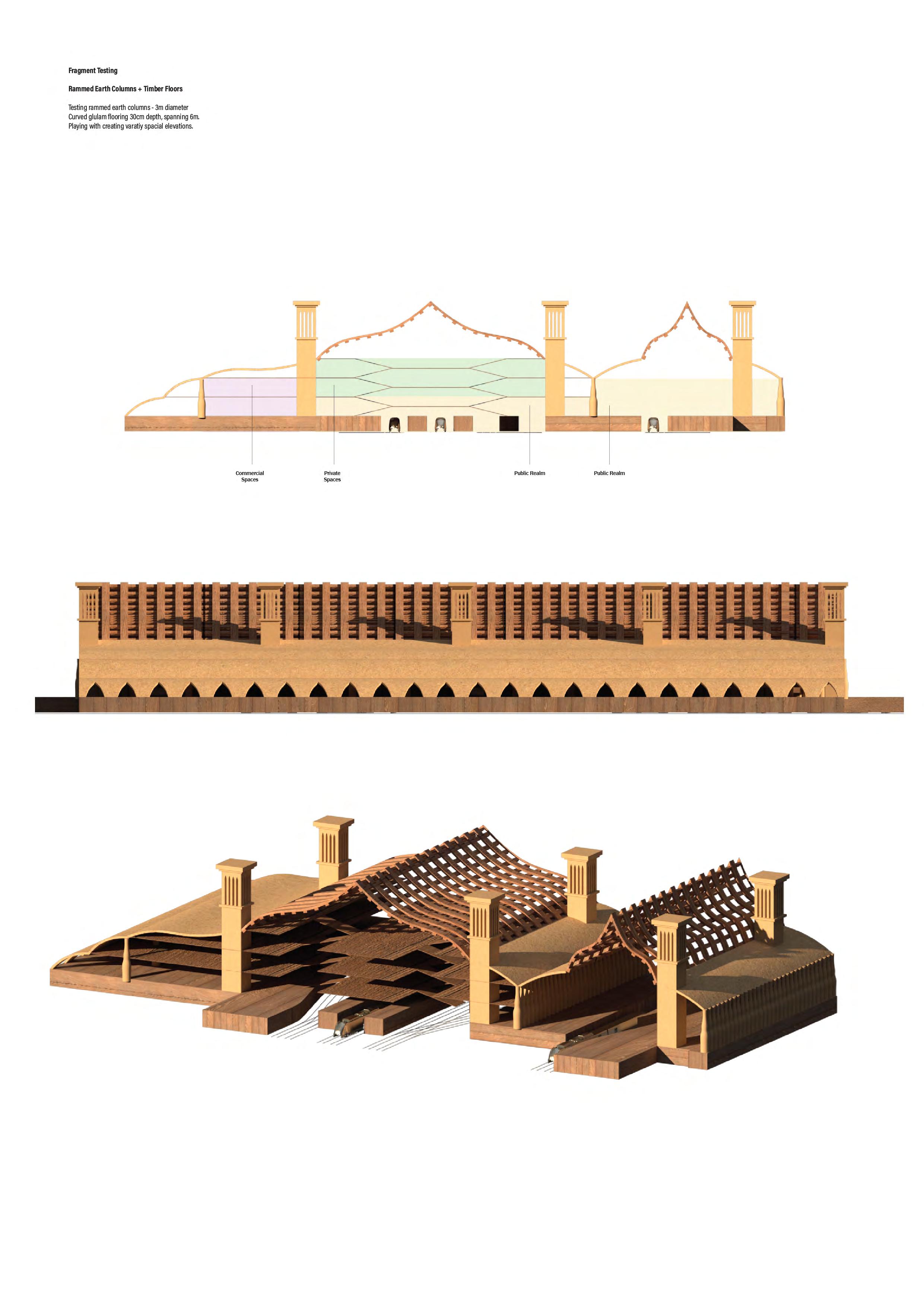 In the heart of Riyadh, Saudi Arabia, lies Diriyah, the city of mud, a place steeped in historical significance. This architectural design project seeks to honor the rich heritage of Diriyah while embracing a forward-looking vision for a sustainable and vibrant future. The project focuses on the innovative use of rammed earth and engineered timber, harnessing their inherent qualities to shape a contemporary architectural narrative.