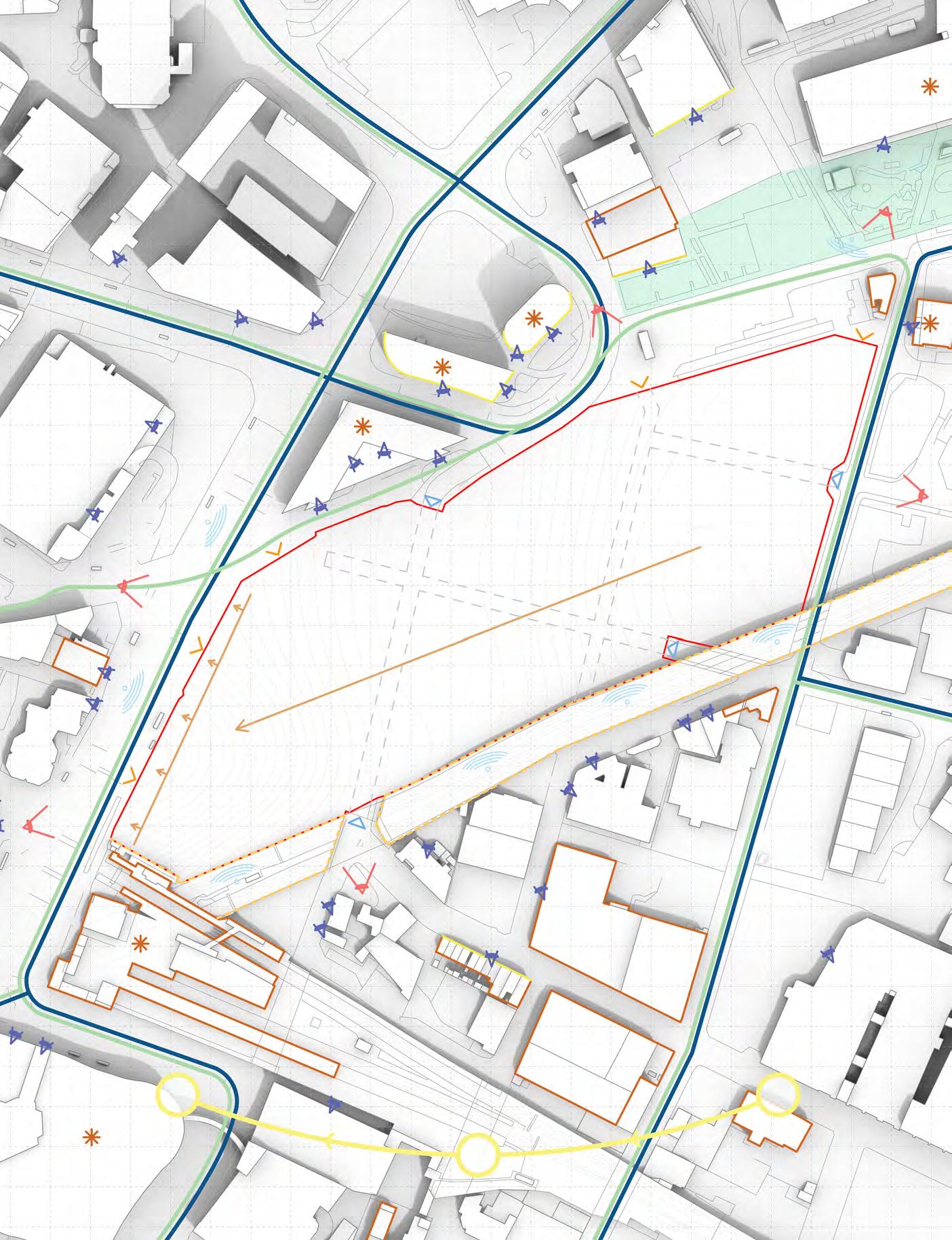 0F: HS2 STATION N 1:500 2m 5m 10m 6 7 5 1 2 3 4 8 14 9 12 13 11 10 Key 1.Busstop 2.Destinationretail/dining 3.Impulseretail/dining 4.Ticket,information+stationoffice 5.Steppedpromenadeandseating 6.Primarystructurecolumns 7.Plantedbridgepassagetoentrance 8. Stationentranceticketbarriers 9.Primaryentrytobuilding 10.HS2stationplatforms 11.Stationconcourse+kioskspaces 12. Ticketbarrierthreshold 13.Stationconcourseentrytobuilding 14.Railwayviaduct Plans+Sections BB BB AA AA