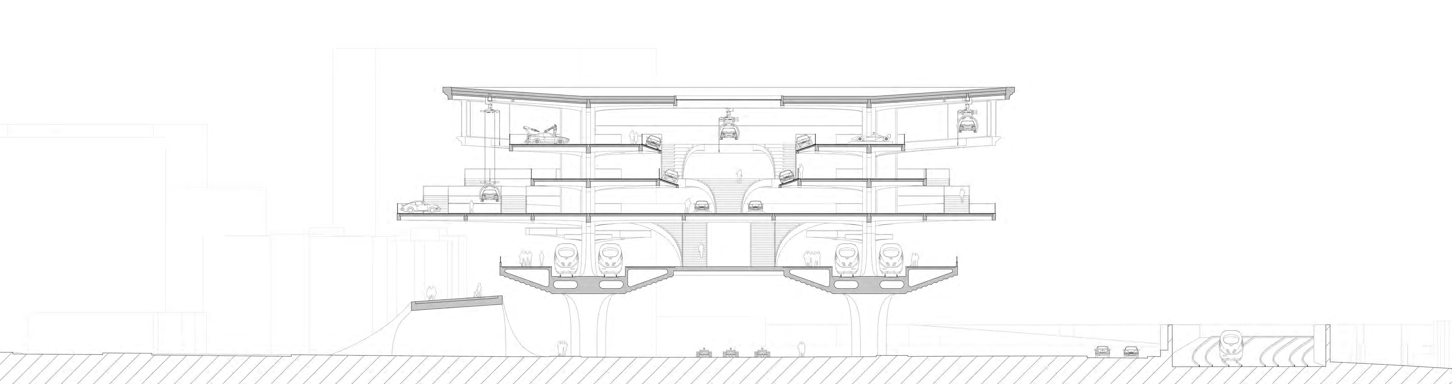 SECTION BB Plans+Sections N 1:200 1m 2m 10m 2 1 4 6 5 11 10 15 16 17 18 14 12 19 20 9 13 3 7 8 Key 1. FormulaEcoursetrack 2.Plantedbridgepassagetoentrance 3.Railwayviaduct 4.Viaductpiercolumns 5.Stationconcourse+kioskspaces 6.Stationconcourseentrytobuilding 7.Carexhibitplatforms 8.Stationplatforms 9.Cardisplaybalcony 10.Customcardeliveryviaconveyor 11.BritishLeylandheritageexhibition 12.Atrium+platformexhibits 13.Atriumcarexhibitionledges 14.Customcarcustomerdesignplatforms 15.Interactivecarassemblycustomisation 16.Ceilingcarconveyorrailingsystem 17.VR/ARexhibits 18.Openingconveyorpassagedoors 19.Photovolticatriumrooflight 20.Biodiversityupliftgreenroof AA AA