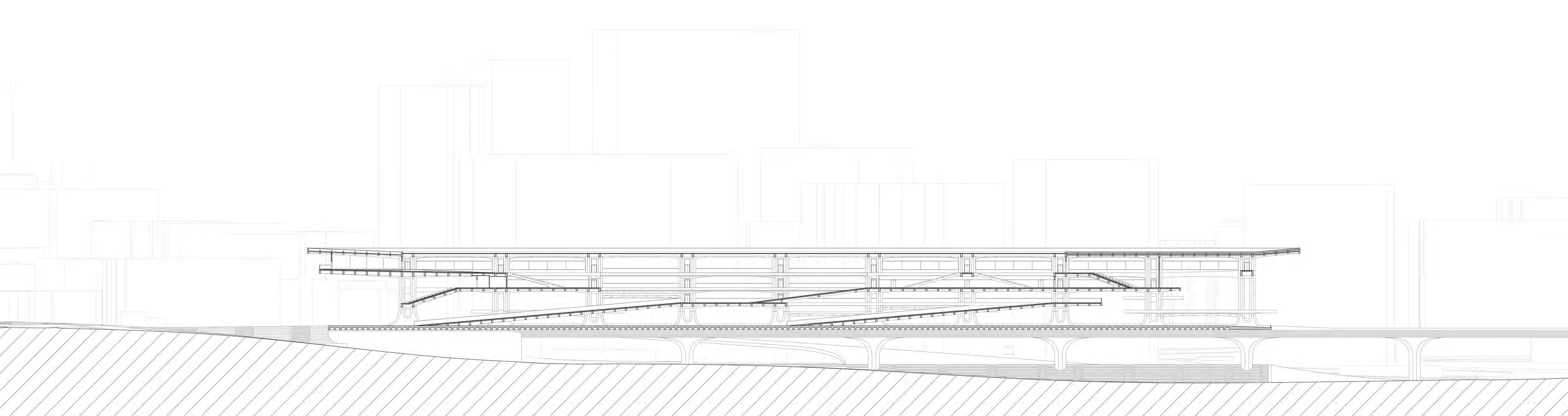 -1F: FORMULA E PROMENADE N 1:500 2m 5m 10m Key 1.Steppedpromenadeandseating 2.Goodsdeliveryanddropoffpoint 3.Viaductpiercolumns 4.Plantedbridgepassagetoentrance 5. FormulaEcoursetrack 6.Steppedpromenadeandspectating 7.Slopinggrassbank 8.Intersectingroadtocitycentre 9.Intercitytramtracks 1 6 9 3 5 2 4 8 7 Plans+Sections BB BB AA AA