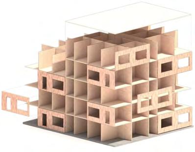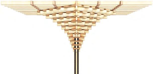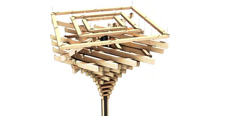Aninterpretationofthedougongsystemwherebythesurfacearea increasesexponentiallywithheight,utilisingdowelassembleyto enhancestructuralcapability.Alsoenablingfloorbeamstoextrude atvariouslevelswherenecessary,creatingacomplexformfroma kitofpartsthatmightbeadaptedwherenecessary.