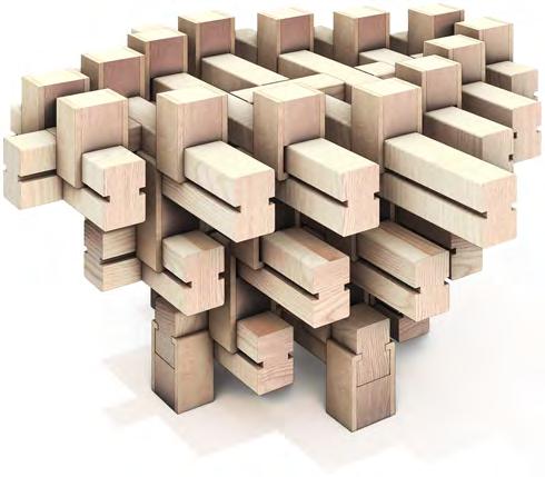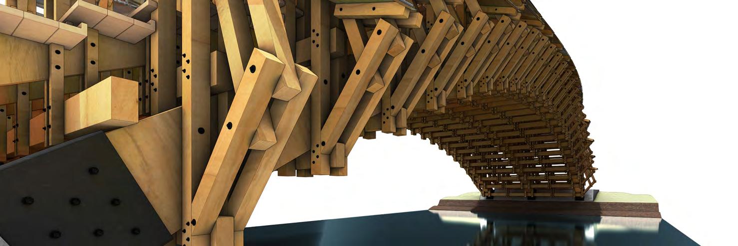 Anexperimentalfragmentinextractingthe TimberBridge’skitofpartsstructure,seeing howprefabricatedsmallerpartsmightbe assembledtoformlargerstructuralelements.