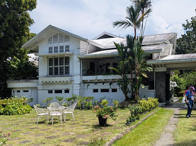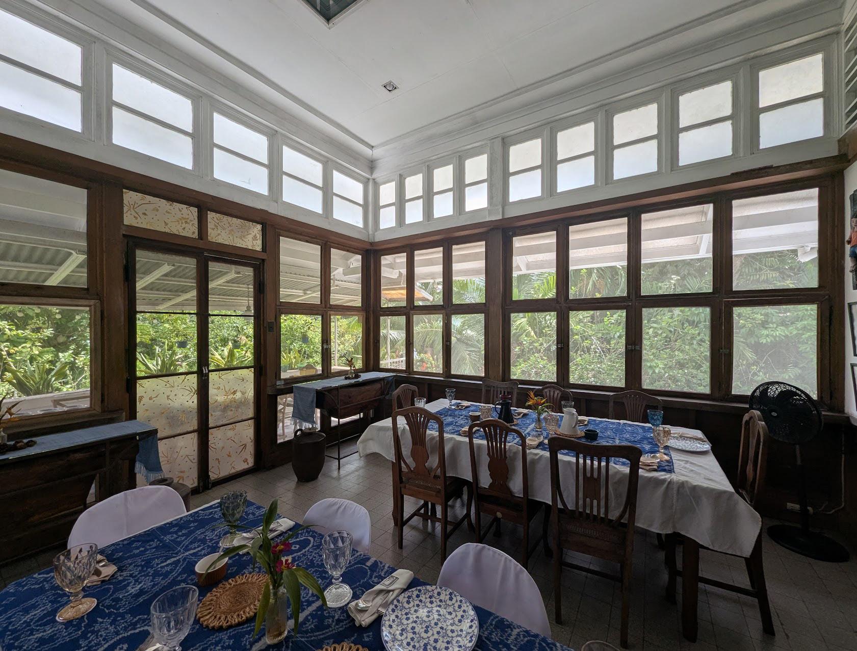 Built in 1939, Casa A. Gamboa reflects this negotiation. Elevated from the ground in continuity with Spanish bahay-na-bato logic, it incorporates American colonial chalet proportions while retaining tropical sensibili/es: wide overhangs, permeable façades, and approximately forty (40) operable doors that facilitate cross ventilation. Its timber structure is not merely aesthe/c nostalgia; it is a climatic system.