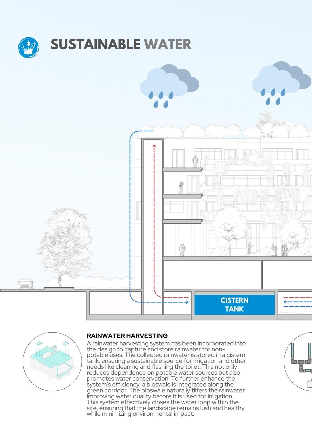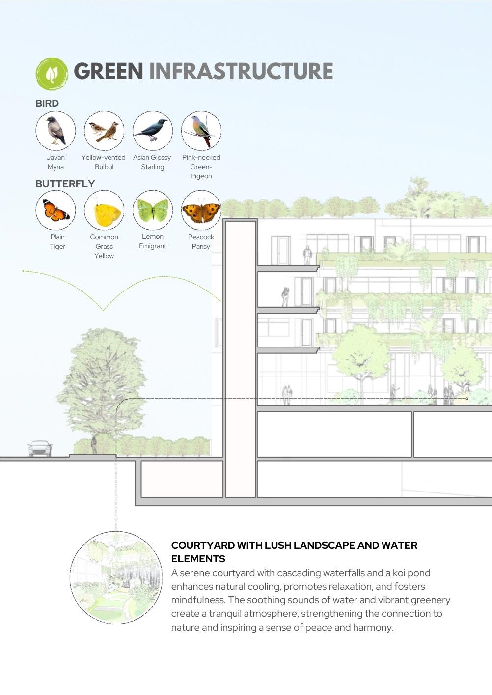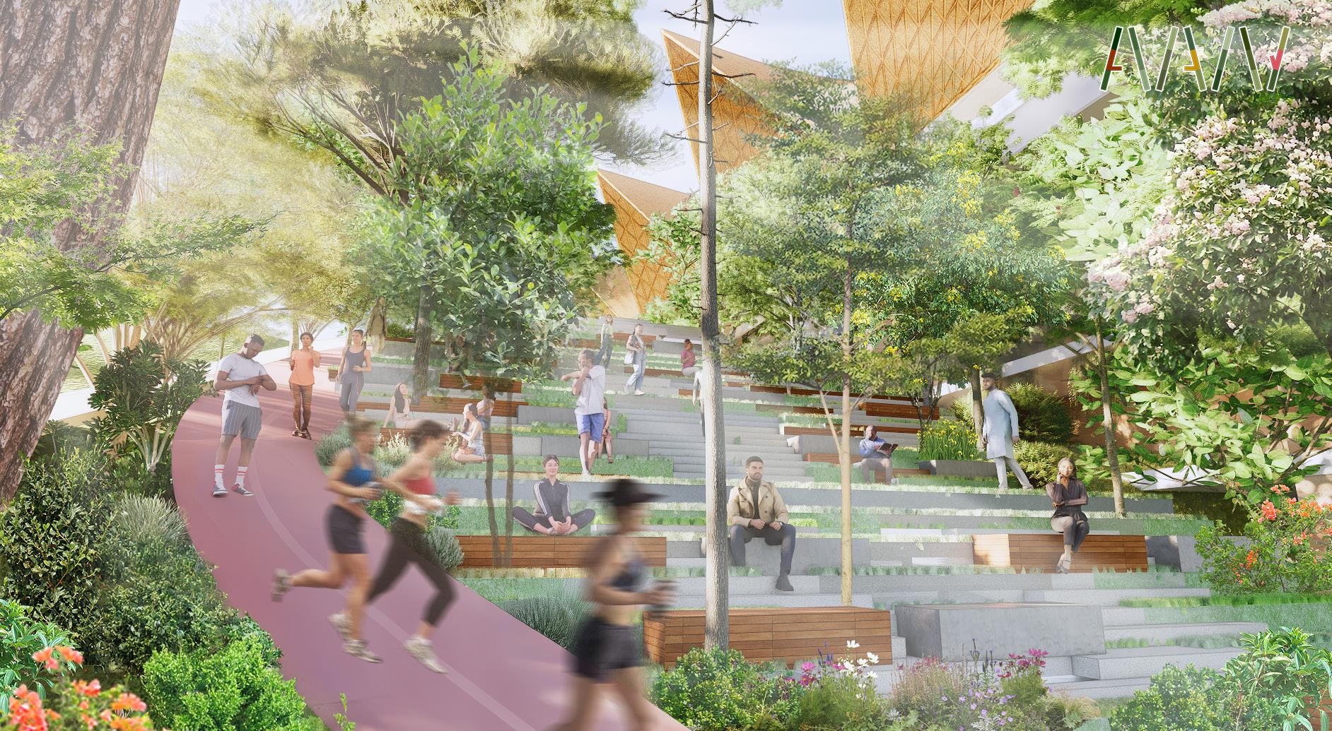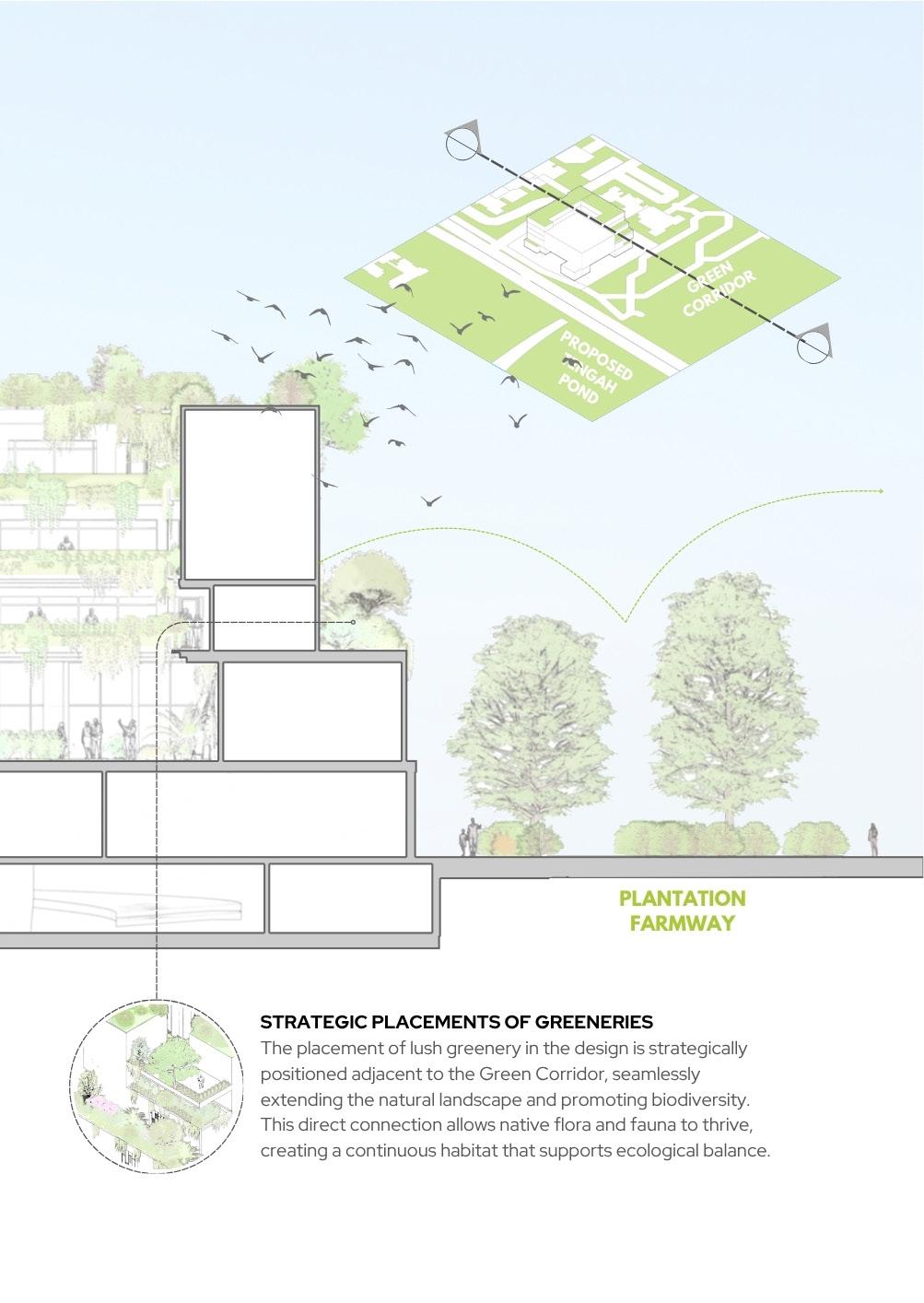 evapotranspiration and shading, thereby reducing building energy demand (SDG 7). Third, the Movescape principle will establish a continuous promenade and dedicated bikeway, transforming the creek into a safe, non-motorized transport and recreation network that connects key areas (SDG 11) and promotes physical activity (SDG 3). Finally, designated programming zones, such as outdoor learning and well-being areas, will encourage active community use and civic engagement, consistent with the Bayanihan mandate for co-management and long-term stewardship (SDG 17).