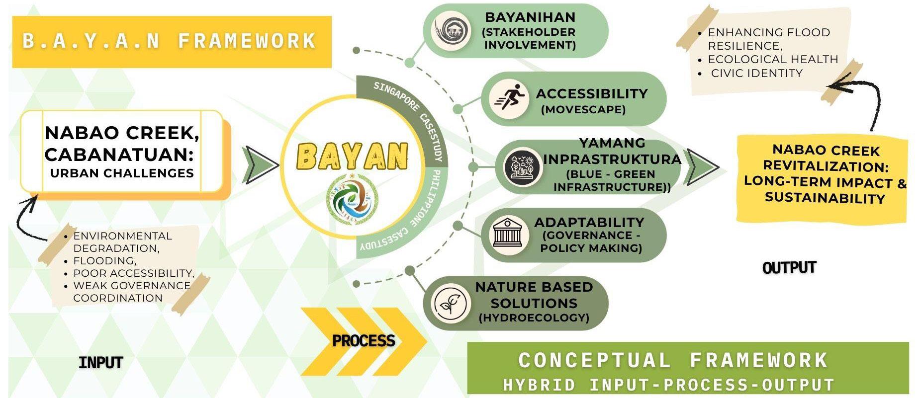 The revitalization of Nabao Creek is essential for redefining sustainable urban development in Cabanatuan City. Through the integration of WSUD, the ABC Waters Programme, and the localized B.A.Y.A.N. Framework, the city can reverse hydro-geomorphic degradation and establish a resilient blue-green urban spine. This initiative provides critical climate mitigation, secures water resources, and exemplifies institutional and community-led sustainability. The Nabao Creek project sets an urgent precedent for transforming urban waterways throughout the Philippines into vital ecological and social assets.
