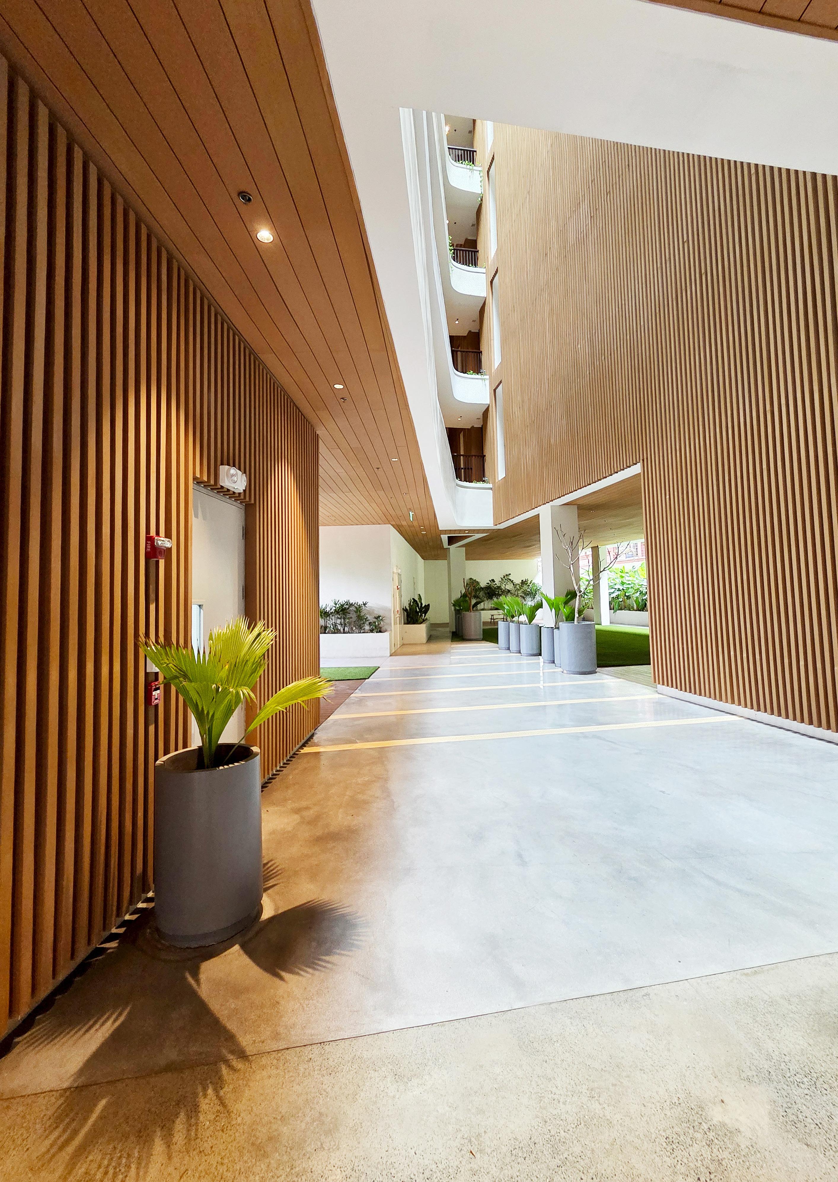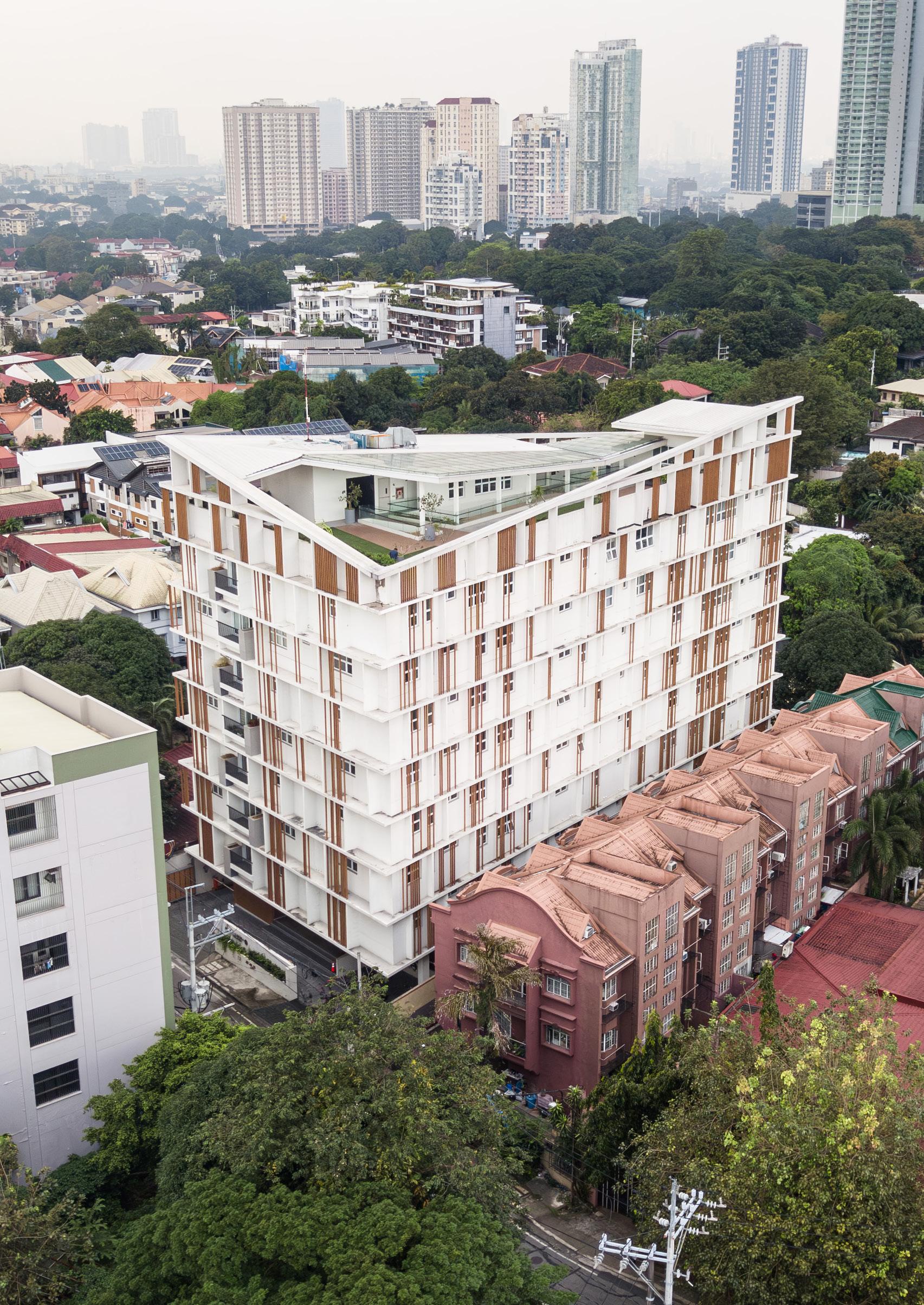 Mariposa Mews aimed to demonstrate a new way of living by understanding the local context, practising intentional design, and respecting the environment. Set on a 1,239 sq. m lot in Quezon City, Philippines this eight-storey, with a roof deck, 36-unit residential building rethinks urban density through light, air, and shared space. Homes range from one to three bedrooms with generous living spaces, organised around a skylit central atrium that draws daylight deep into the building and encourages natural cross-ventilation. The massing gently tapers, its roofline recalling a softened mountain silhouette, while small gardens, open spaces, and a communal ground floor with a lobby, fitness centre, and gathering space cultivate everyday interaction. Two basement levels consolidate parking, bicycle facilities, and building services to keep the street edge calm and pedestrian-friendly. The project balances financial viability with environmental responsibility. Certified LEED for Homes Gold project and the first of its kind in the Philippines. It has been recognised at the Dot Property Philippines Awards 2025 as the Best LEED Development and Best Boutique Developer. Mariposa Mews demonstrates that environmentally responsive living can be both market-ready and contextually grounded, offering a compact urban refuge instead of a conventional apartment block.