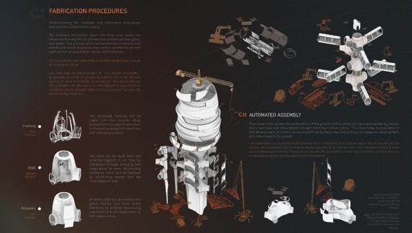 A martian infrastructure capable of sustaining life by adapting modularity in automated assemblies