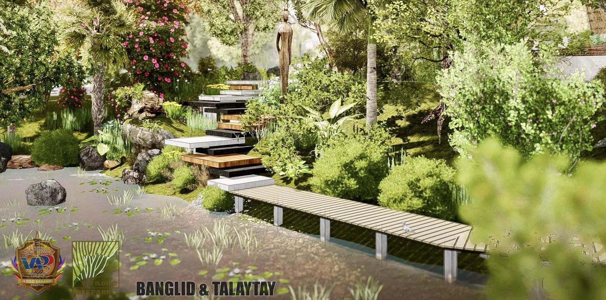 Talaytay is a combination of two vernacular terms: taytay-meaning bridge or link and latay which means to walkthrough. Talaytay is a combination of elevated boardwalks, gravel pathways, concrete slab, and leaf-patterned bricks.