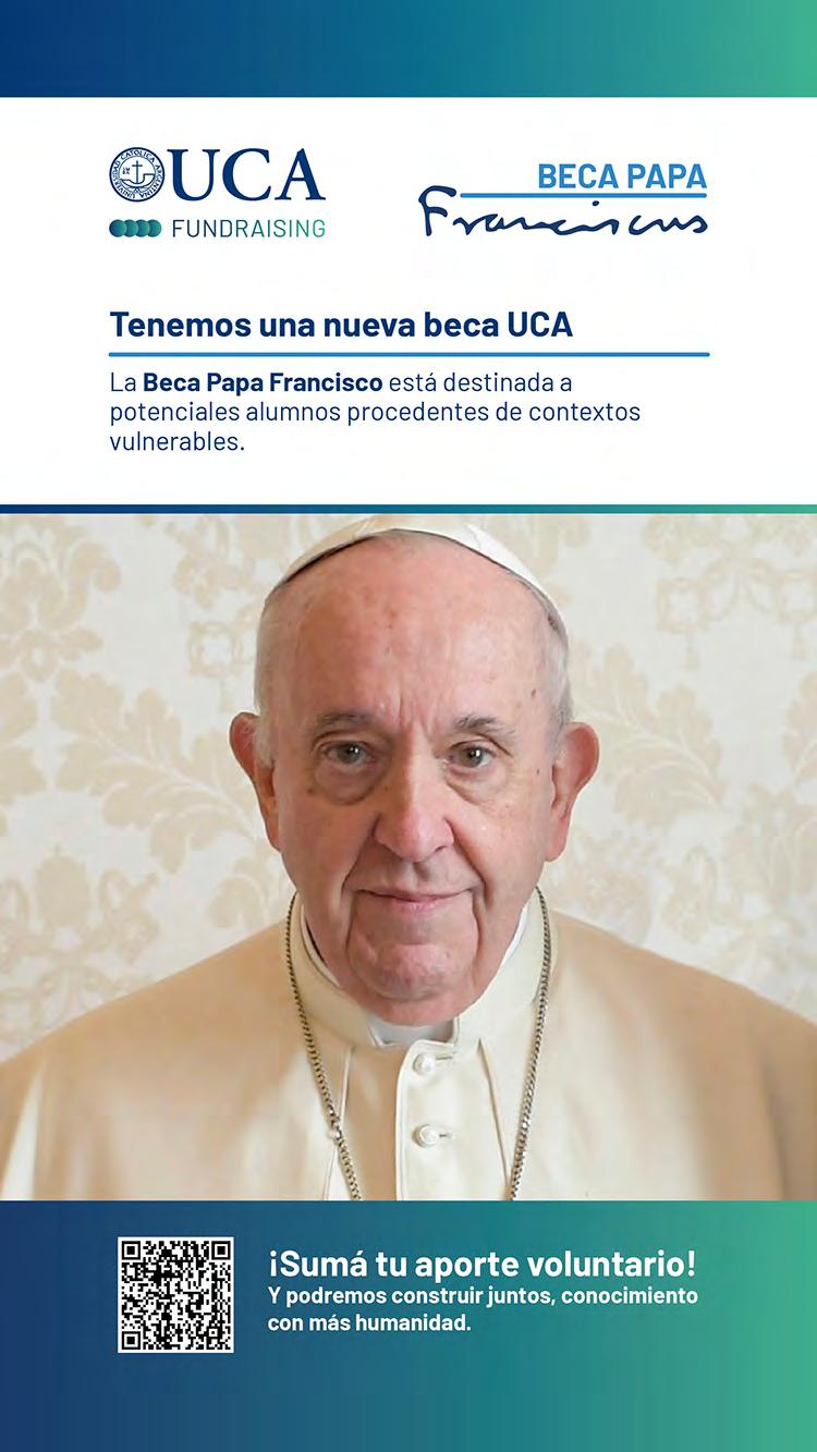 En ese marco, Mariano Yezze anunció el lanzamiento de las Becas Papa Francisco, inspiradas en el legado del fallecido Sumo Pontífice y destinadas a estudiantes procedentes de contextos vulnerables, ya que cubren el 100% de la matrícula. Los principales donantes que hicieron posible este beneficio son Pan American Energy y Banco Santander. El arzobispo García Cuerva dedicó unas palabras sobre el significado de las becas: “El Papa Francisco nos alertaba de la globalización de la indiferencia, de que no nos conmueva el dolor de los otros, y proponía la cultura del encuentro. Reconocernos distintos, pero reconocernos hermanos. El Papa León XIV unía a esa globalización de la indiferencia la globalización de la