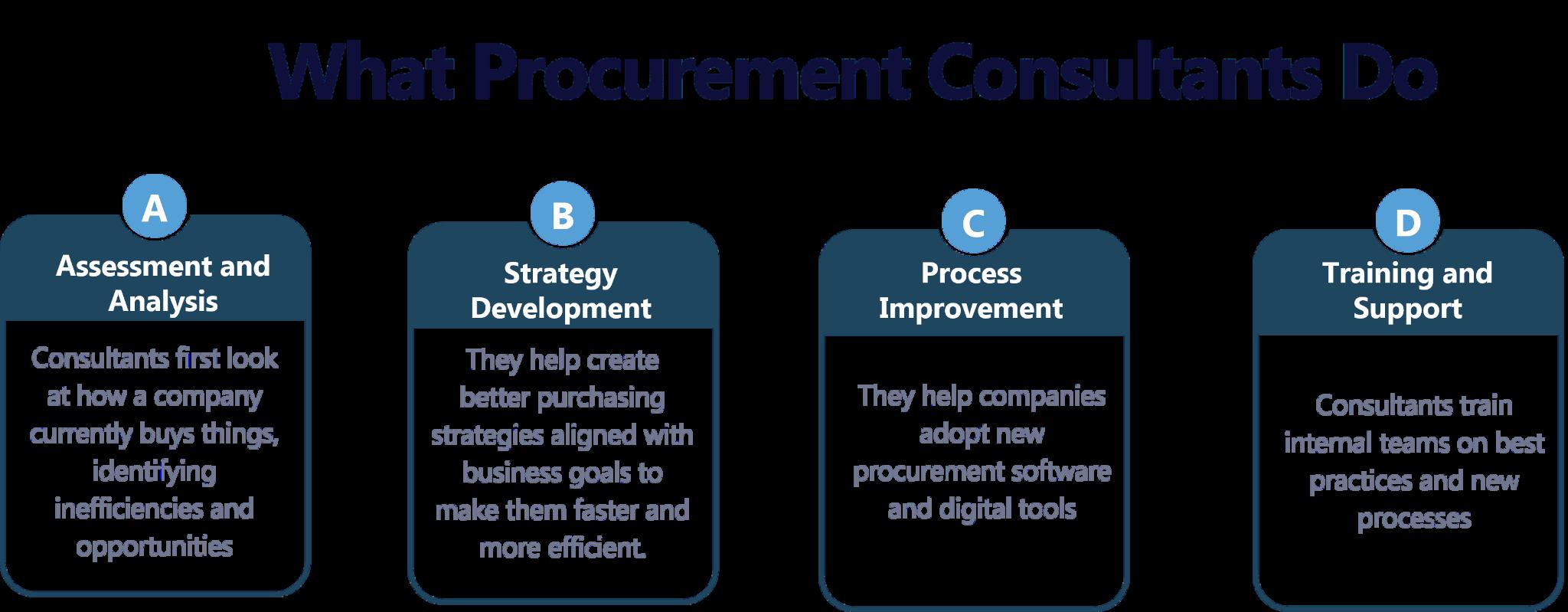 Procurement consultants act as expert advisors who bring industry knowledge, cross-sector experience, and analytical expertise They assess procurement structures, identify inefficiencies, and design transformation strategies tailored to business goals.