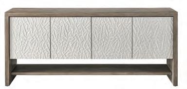 (4) Doors. (2) Pull-out trays w/gray felt lined silver tray. (2) Adjustable shelves. Wire access. Finish: Weathered Oak. Base: Otter. Hardware: Satin Bronze.