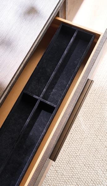 Removable black felt-lined jewelry trays are included in the top left and right drawers of all Universal dressers.