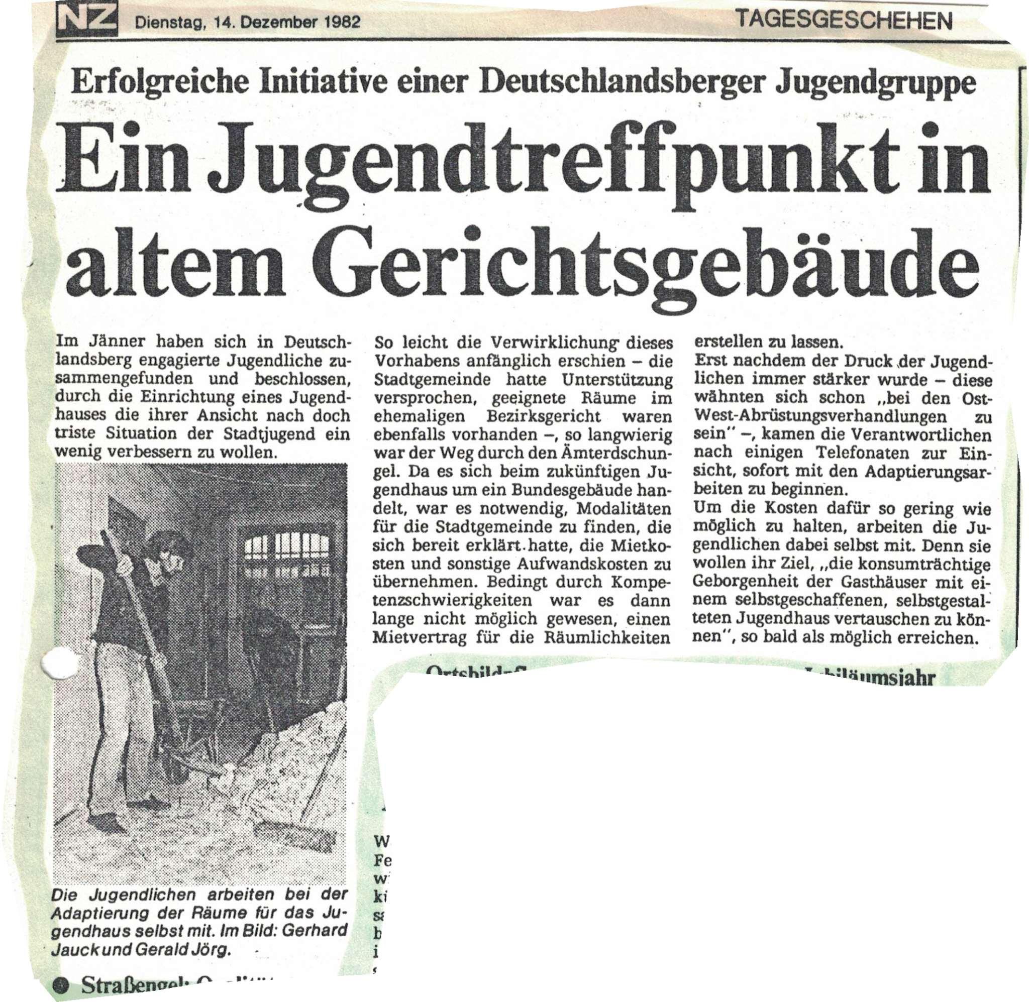 AusrechtlichenGründenmietetedieStadtgemeindeDeutschlandsberg,wieschonerwähnt, dieRäumlichkeitenan.DaswaretwaAnfang1983.DieStadtgemeindemischtesichjedoch nichtindieselbstverwaltetenBandräumeunddasJugendhausein.Esentstandeineinmaliger freierKreativitätsschauplatz,denesnachdieserZeitdes„Häf’n“niewiedergebensollte.