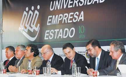 De izquierda a derecha: Juan Guillermo González, director de Tecnnova; Alberto Uribe, rector UdeA; Sergio Fajardo, gobernador de Antioquia; Luis Carlos Uribe, presidente Comité UEE; Aníbal Gaviria, alcalde de Medellín; Hernando José Gómez, Zar de Acuerdos Internacionales de la Presidencia de la República; Manuel Santiago Mejía, representante del sector productivo en el Consejo Superior Universitario