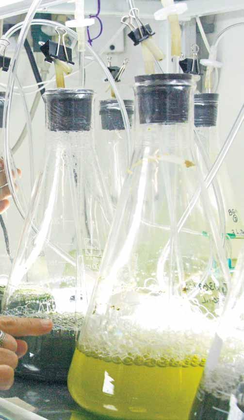 europeas y asiáticas en productos naturales nuevos”, según la profesora Lucía. Ese interés no solo abarca los colorantes, también productos antivejez o para conservar la piel. Estos últimos —precisa la profesora— están contenidos en microalgas, y en su laboratorio hay un producto para ese propósito. “Es un polisacárido sacado de un alga roja que produce pigmentos que valen entre 5.000 y 33.000 dólares el gramo, porque tienen muchas aplicaciones; además