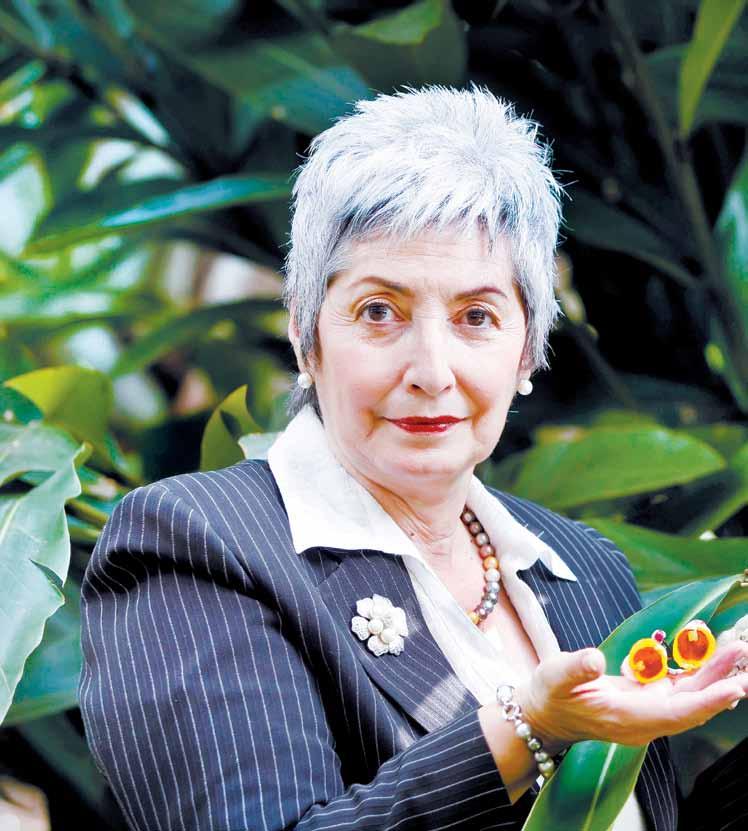 La profesora Silvia Luz Jiménez Ramírez es la primera mujer colombiana que recibe el honor de ser miembro Correspondiente de la Academia Iberoamericana de Farmacia y la segunda de América Latina. En la foto, muestra una de las plantas antiofídicas, Alpinia zerumbet, de la familia de las zingiberaceae, que se encuentra en el campus, muy cerca de su sitio de trabajo.