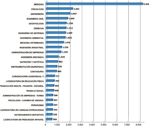 geniería industrial, administración de empresas e ingeniería mecánica, cada uno con más de mil inscritos.