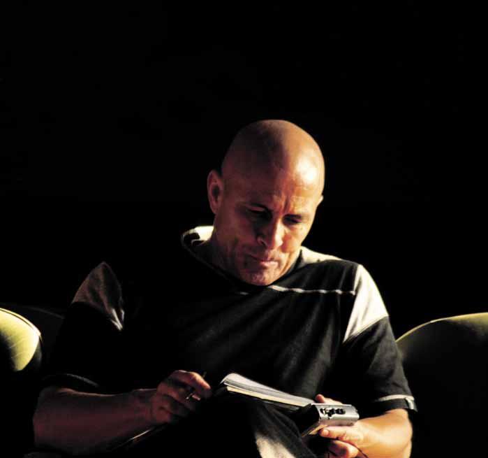 del otro. Argumentará con firmeza hasta el final, y si llega a concluir que está equivocado mejor se callará antes que reconocerlo. El orgullo es parte de su profunda humanidad. Y está muy ligado a la vanidad que se le nota en cada poro, o digamos más bien en cada músculo, pues en parte por su obsesión por la salud, que tal vez se ha acentuado desde que su hermano murió por problemas cardíacos, él pone más atención a su cuidado físico, pero asimismo se muestra orgulloso de su cuerpo de 61 años tonificado por el trabajo en el gimnasio, y por las sesiones de trote bajo el sol del mediodía en la Universidad —cuando todavía era empleado aquí—.