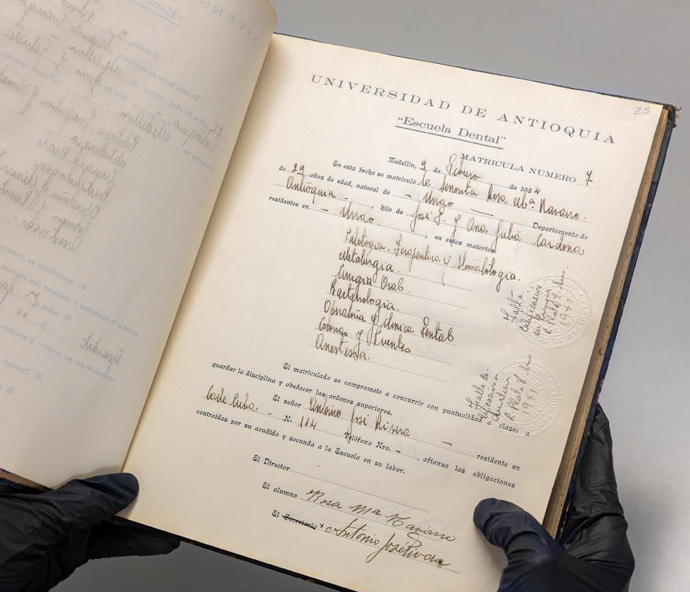 La Universidad de Antioquia ha sido testigo y protagonista de hitos que marcaron la historia de Colombia. Su Archivo Histórico preserva la memoria universitaria y refleja la evolución institucional, política y social del departamento y del país. En más de 200 mil historias académicas, documentos administrativos y personales se han identificado tres tipos de tintas, cinco tipos de papel y cuatro estilos de caligrafía, trazados por sacerdotes, escribanos, administradores, hombres y mujeres particulares. Gracias a estos documentos se conoce, por ejemplo, la historia de las cinco primeras mujeres matriculadas en la UdeA, quienes en 1932 —un año antes de que su derecho a la educación fuera reconocido por la ley— desafiaron las normas sociales al ingresar a la Escuela Dental. El Archivo es, en definitiva, un acervo que ofrece un valioso conocimiento para comprender el pasado y el presente.