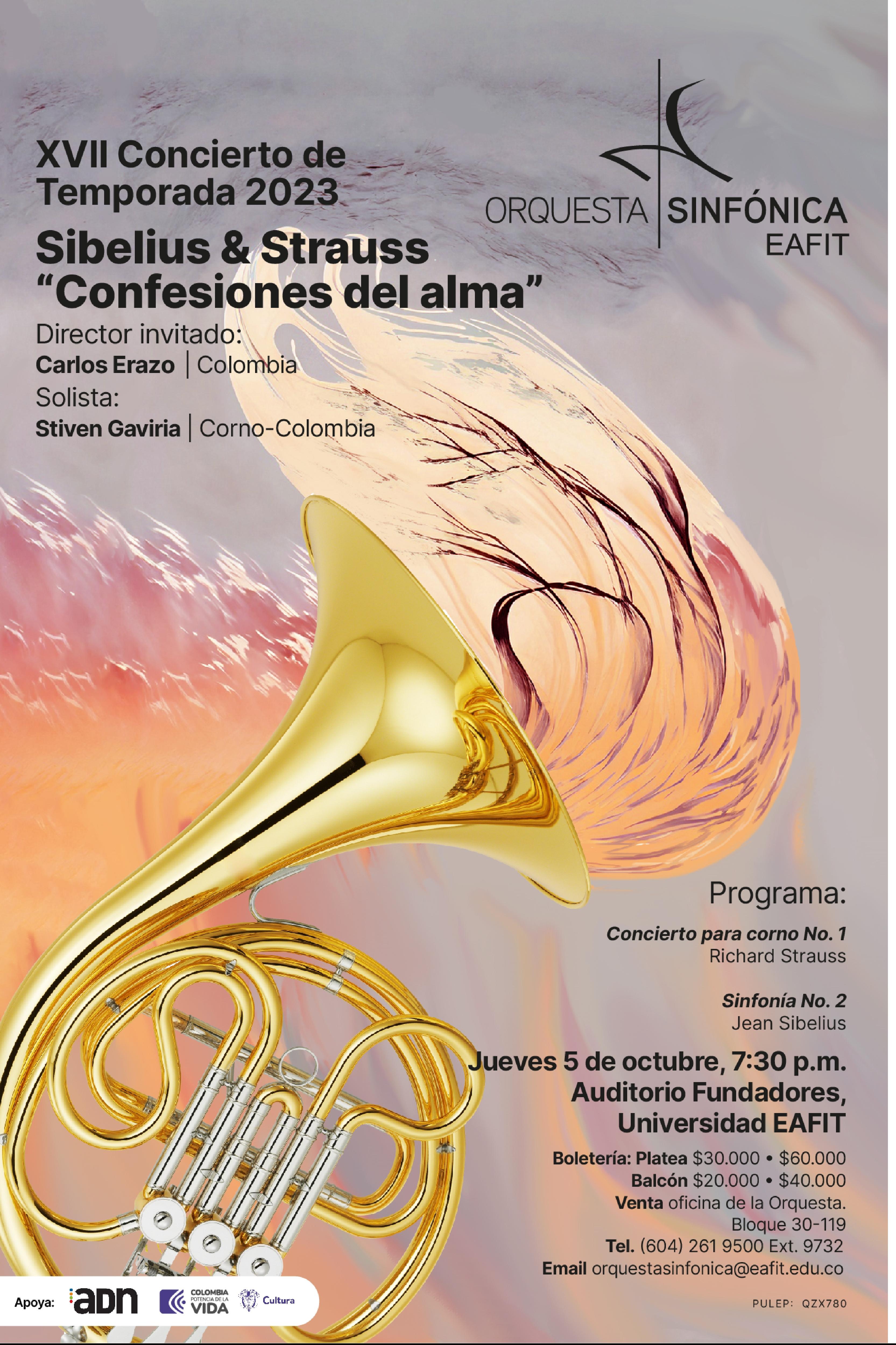 ElconciertodeestanochetitulaConfesionesdelalmay nosconectaconlossonidosylasemocionesdedos compositoresquehicieronhistoriaenlamúsicauniversal, porsucapacidaddecrearemocionesentrelaaudienciayla profundidaddesumúsica.Aperturaconelconciertode Strauss:estanocheeljefedecornosdenuestraOrquesta,el maestroStivenGaviriainterpretaráelConciertoNo.1enmi bemolmayordeRichardStrauss,unaelecciónperfectaparala orquestapuesenellasepodráapreciarelvirtuosismodel solista.