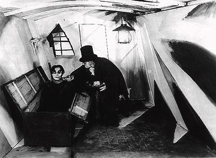 El cine expresionista se caracterizó por los juegos de iluminación, el uso del claroscuro y la dramatización de los ángulos de las cámaras. La obra más icónica del cine alemán es El Gabinete del Dr. Caligari (1920) del director Robert Wiene. En esta película la escenografía e iluminación fue realizada con ayuda de arte pictórico, de modo que tenían un control sobre las luces y sombras para acentuar la atmósfera terrorífica. Para la construcción de la escenografía, Manrique (2021) explica lo siguiente:
