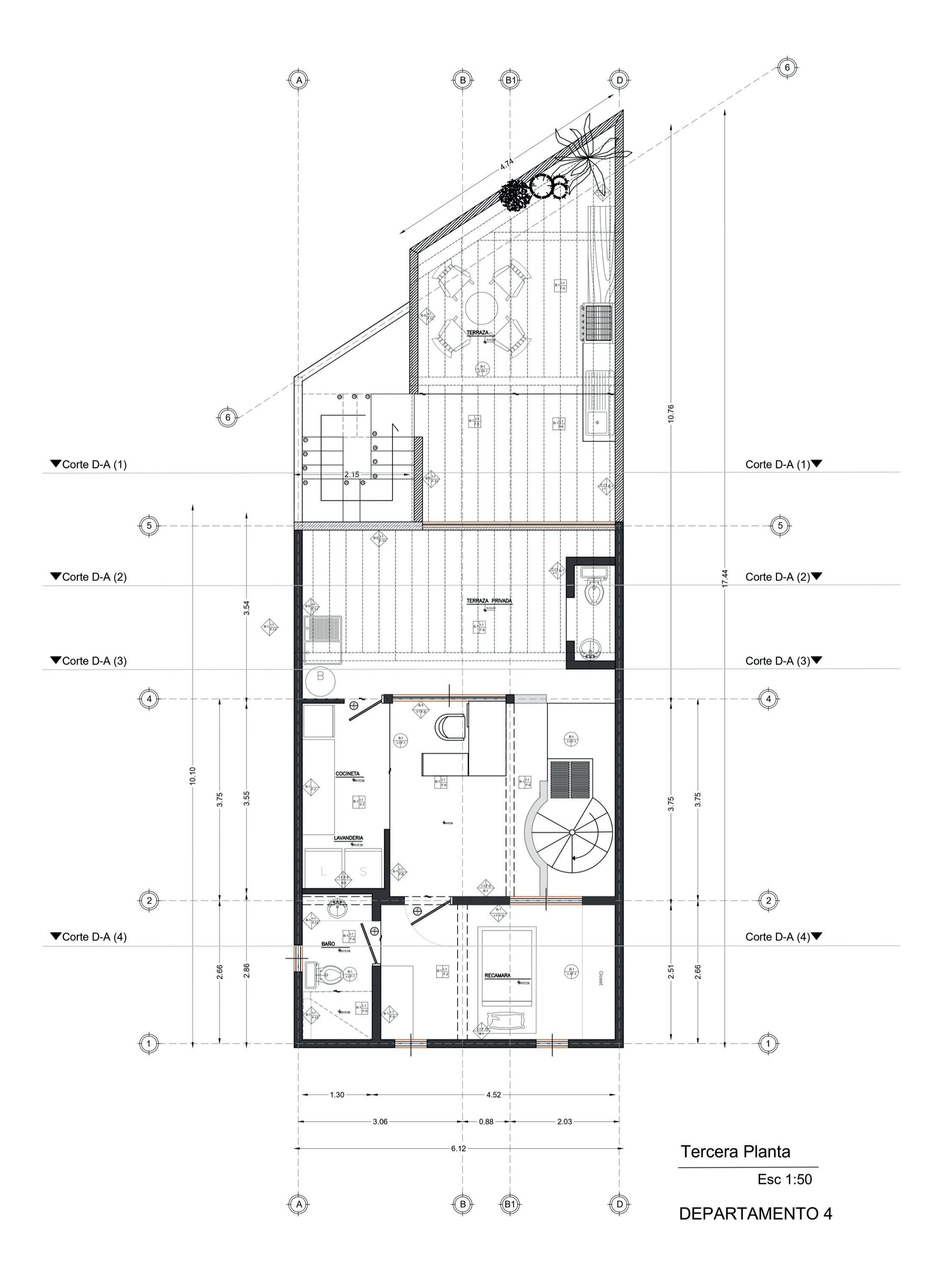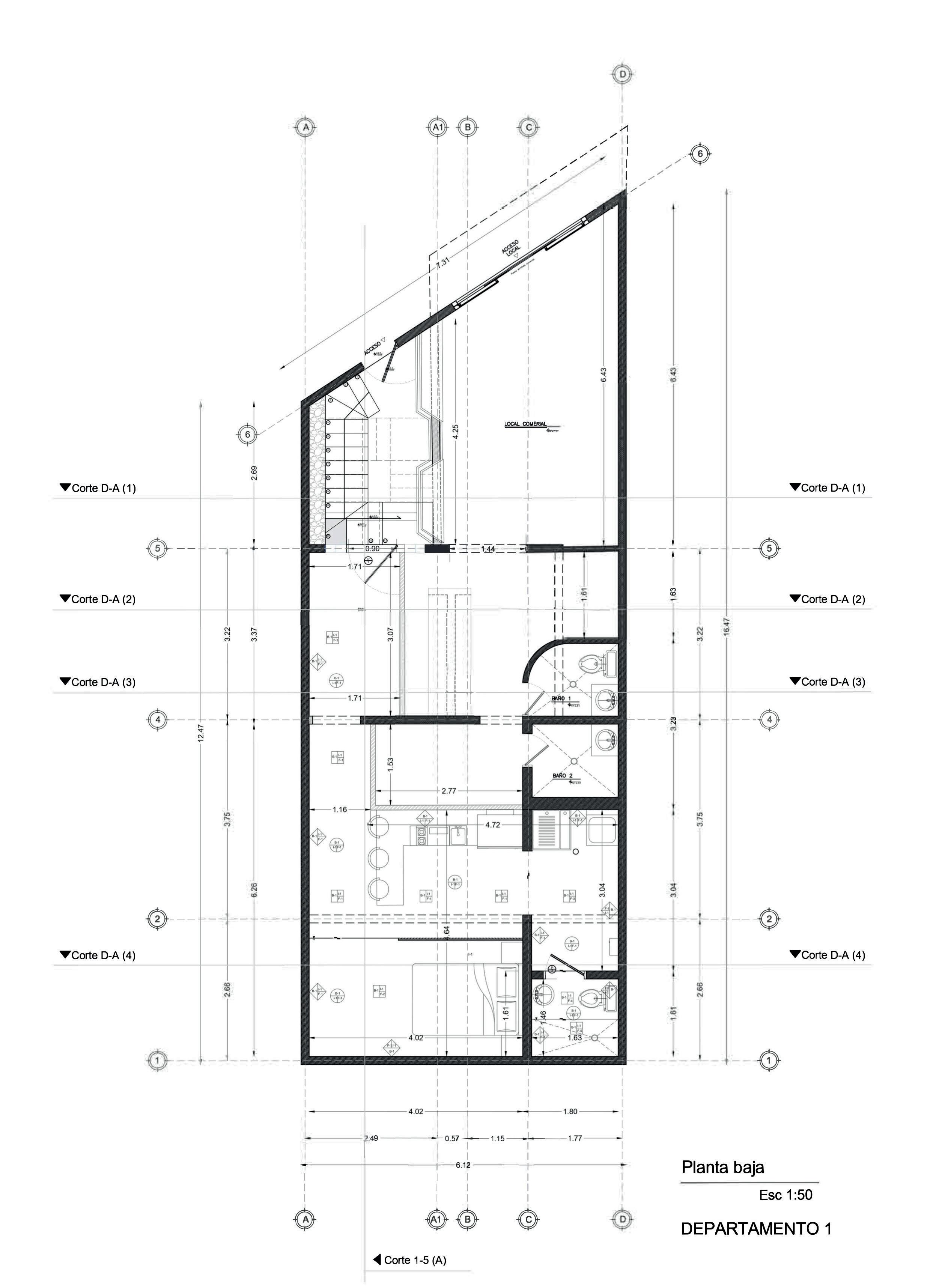El objetivo principal de este apartado es diseñar y justificar la remodelación y planificación de los departamentos, aplicando los conocimientos adquiridos en la clase de Elementos complementarios de la edificación (acabados).