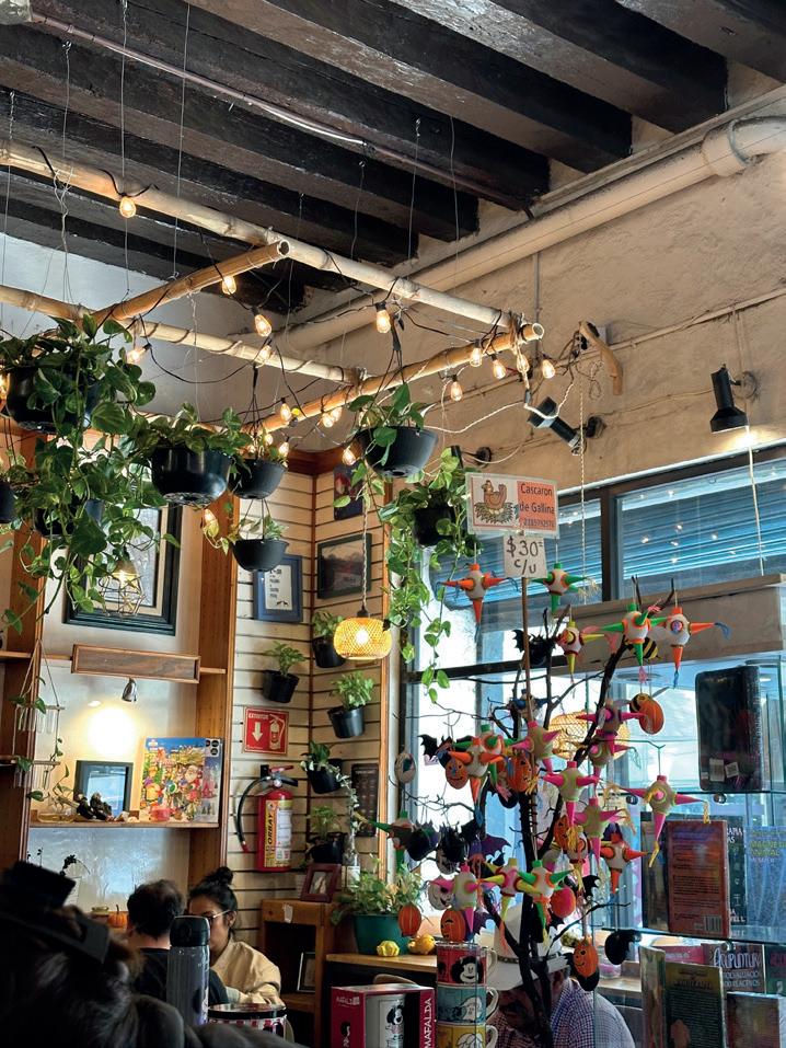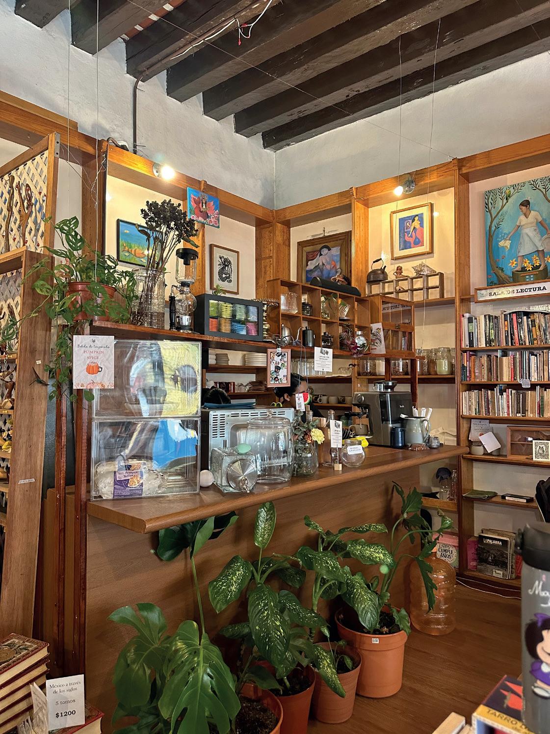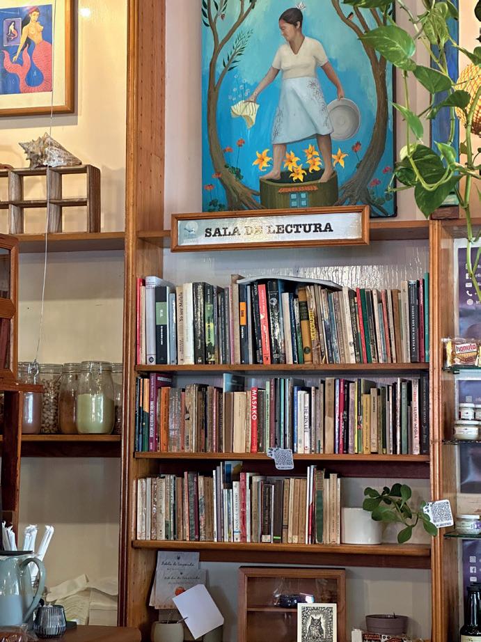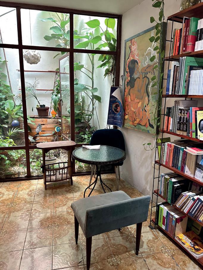 La Rueca de Gandhi considero que es la librería con mejor valor agregado, ya que cuenta en su interior con una cafetería llamada “Ancestros”. Tienen un espacio designado dentro de la librería para que las personas puedan sentarse a tomar una taza de café, comer una rebanada de pastel de chocolate y convivir con sus allegados. Es un espacio tranquilo, decorado con mucha vegetación que capta la atención del usuario al instante. Sin duda es un espacio cuidado y bien pensado, que invita a quedarse más tiempo del planeado. La librería también cuenta con clases de tejido con gancho que se imparten todos