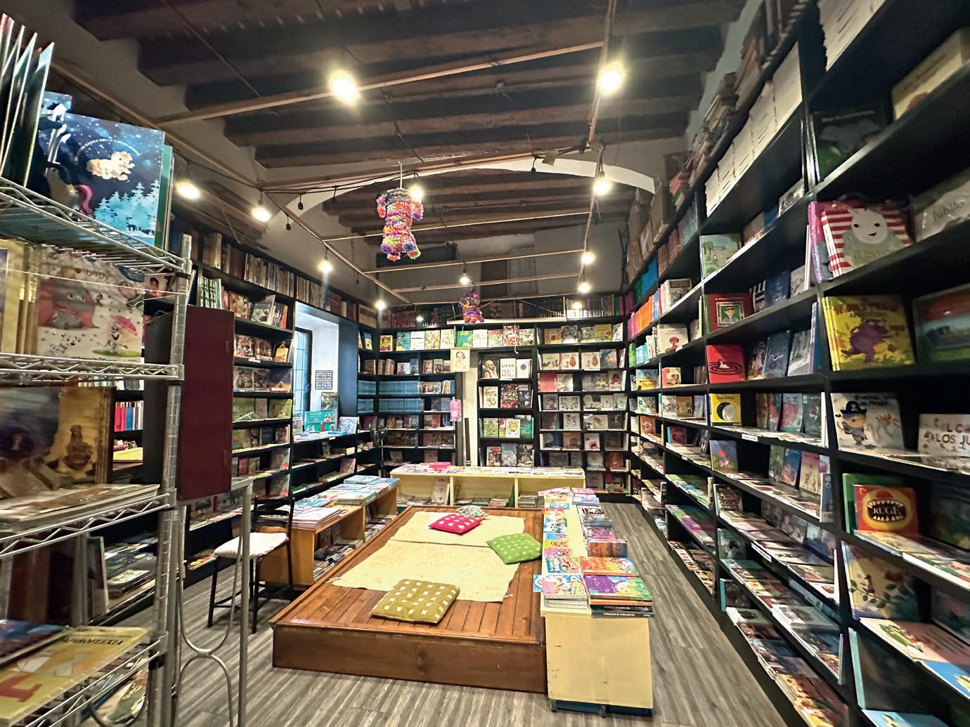 Cuenta con espacios para sentarte en caso de que necesites un descanso de tu búsqueda de libros. Tiene un pequeño jardín en la ventana, el cual proporciona mucha luz y frescura al lugar. Permite que el usuario descanse la vista de tantos libros en las estanterías. También tiene una pequeña área infantil donde los pequeños pueden buscar sus propios libros. Tiene un área amplia e iluminada para recorrer la librería; las proporciones de los pasillos son correctas para un camino fluido sin importar si hay alguien pasando a tu lado.