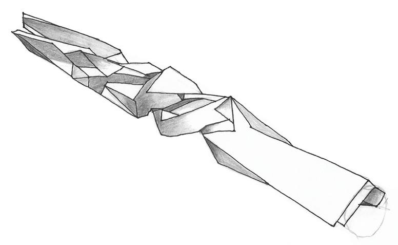 Una segunda aproximación a la abstracción de la forma y la manera en cómo se realiza la percepción a través de fractales se realiza mediante la reinterpretación de un cilindro de papel al cual físicamente se le aplica una torsión, esa modificación a la estructura original nos brinda la posibilidad de apreciar como la forma se integra por partes más sencillas que según su iluminación nos brinda la sensación de volumen o profundidad.