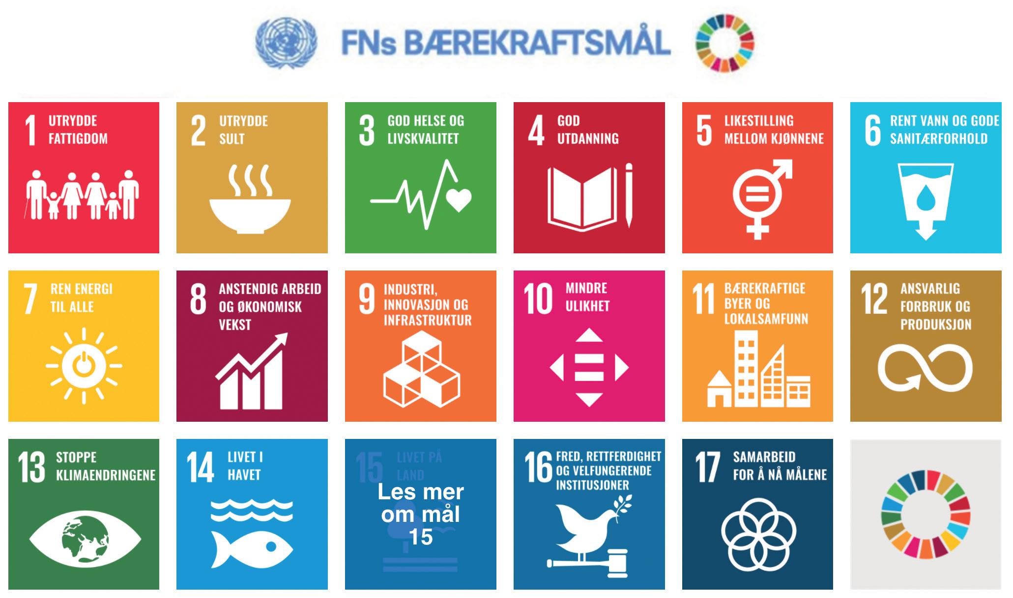 Helt siden Brundtlandkommisjonen i 1994 – hvor man for alvor satte klimaspørsmål på dagsordenen – har man kontinuerlig problematisert menneskeskapte utfordringer på kloden. I 2024 står FNs bærekraftmål sentralt i samfunnsdebatten. Figur 1.6 viser de viktigste satsingsområder for verdenssamfunnet.