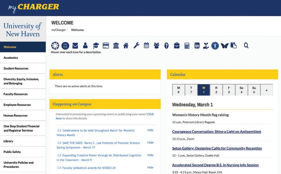 ❑ Log in to myCharger, where you will find campus updates, resources, and events calendar: mycharger.newhaven.edu