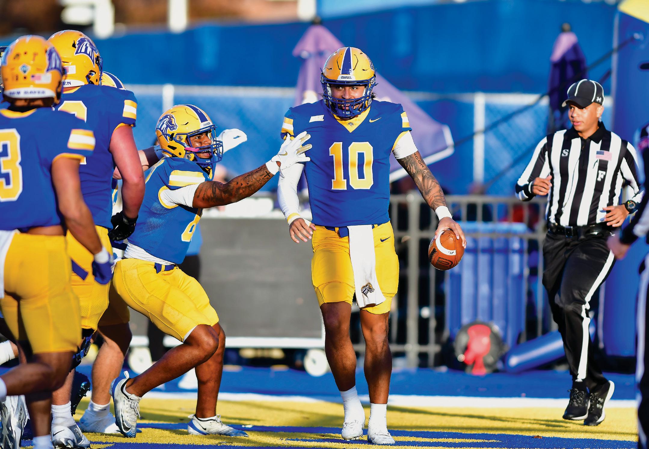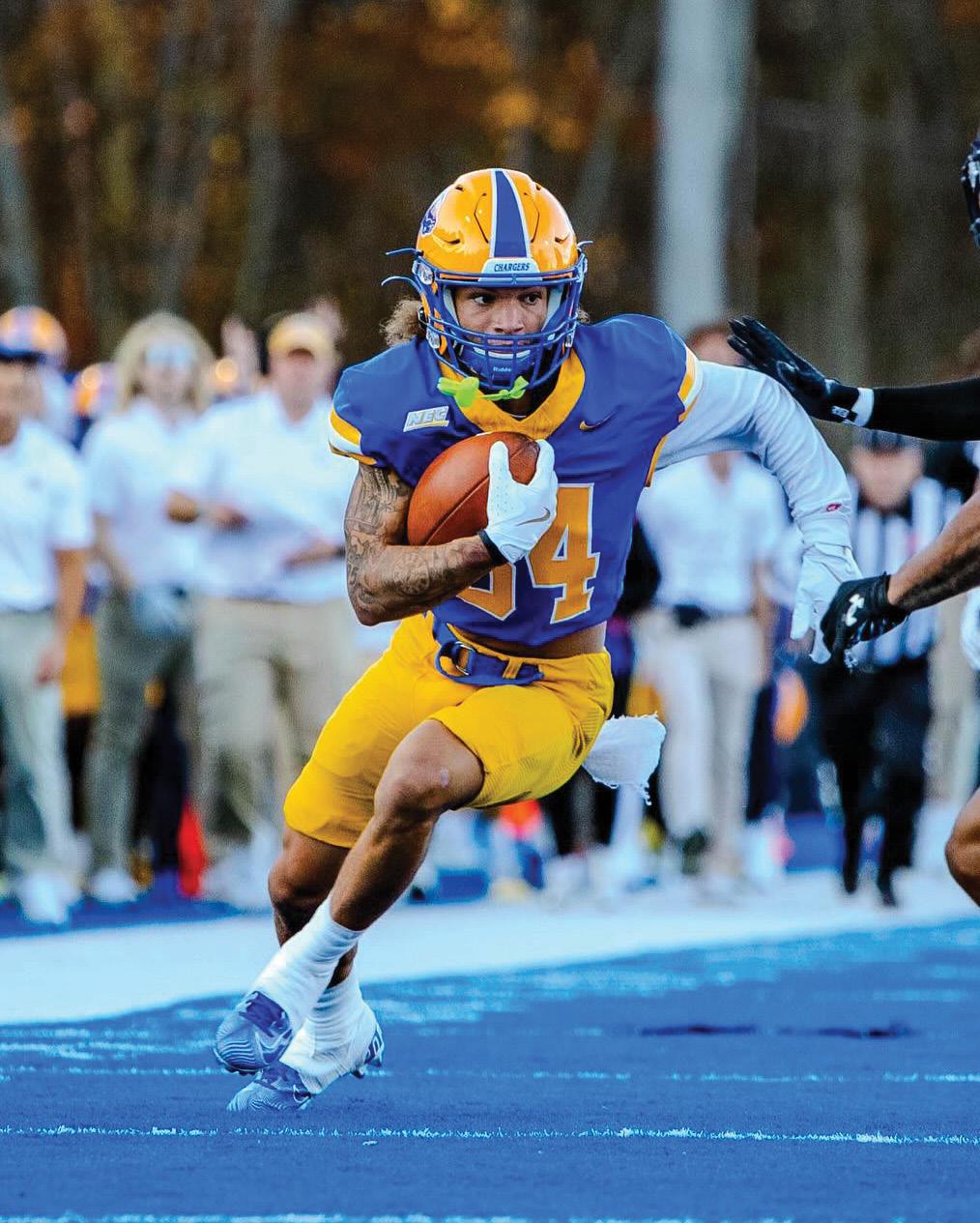 Football earned its first Division I win over UAlbany on Saturday, Sept. 13, thanks to a game-clinching sack by Sebastian Conwell and Pete Melle. It finished the year at 5-5, including a perfect 4-0 at Ralph F. DellaCamera Stadium. Mark Powell was promoted from interim head coach to head coach of the program on Friday, Nov. 7, before the season finale at home against Merrimack, a 41-31 win. A.J. Duffy won NEC Offensive Player of the Week three times, Liam Godwin won NEC Defensive Player of the Week, and more Chargers were named as Prime Performers by the NEC following strong contributions on game day.